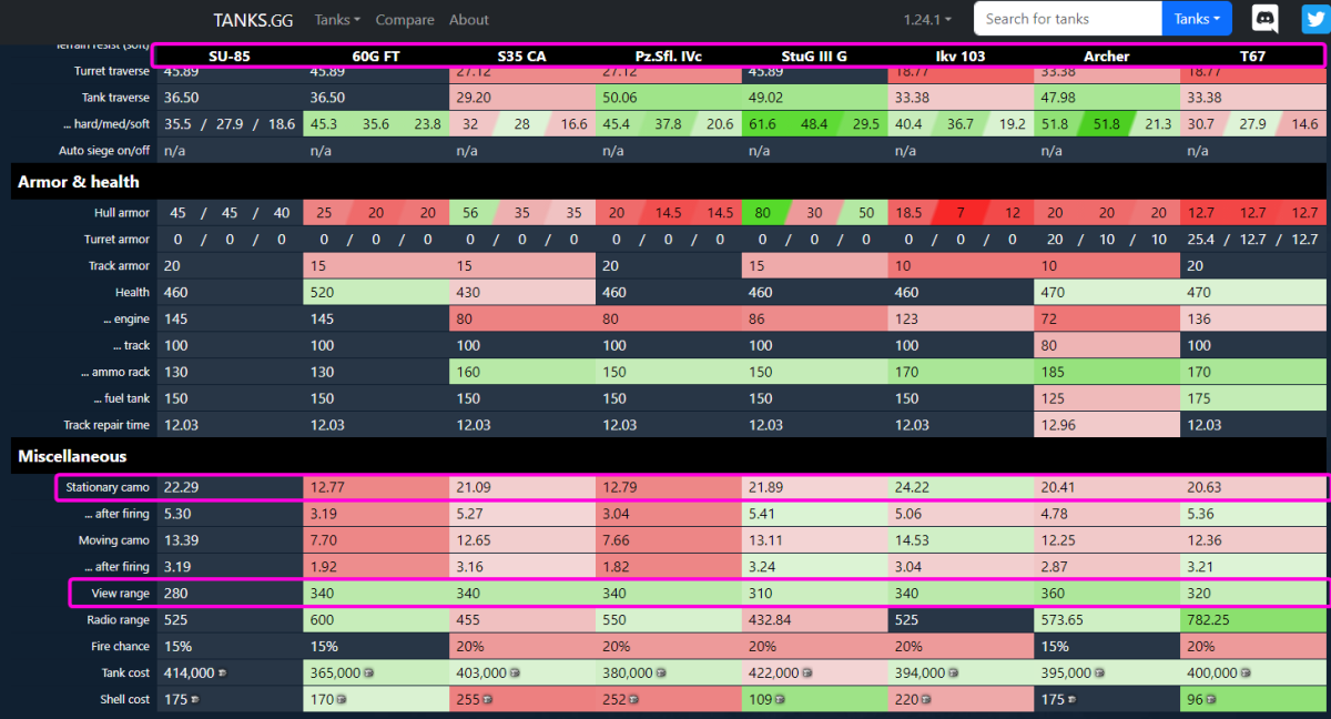 Добрый день! Вопрос по СУ-85. Сравнивая с ПТ-САУ других наций, задаёшься вопросом - кто так ненавидит "Ксюшу"?? Почему у неё настолько зарезан обзор. Вот сравнительная картина по ПТ-САУ V ур, из наиболее популярных: Давайте посмотрим. Совершенно очевидно, что обзор у СУ-85 абсолютно неадекватный, при том, что явных плюсов перед другими у "Ксюши" нет. Может быть динамика? Нет, "Мангал" и даже Штуг быстрее. А Штуг значительно более бронирован, и у него даже явно больше лошадей/тонну. А Т67 и вовсе метеор. А обзор у них значительно (!) выше. Может быть орудие? Нет, Мангал и Арчер имеют явно большее пробитие, многие ПТ-САУ имеют более комфортное и точное орудие. И опять-таки обзор у них тоже значительно выше. Может быть маскировка? Конёк "Ксюши"? И снова нет - почти все танки на скриншоте имеют схожую маскировку (кроме 2 из подборки), а некоторые даже более скрытные с опять-таки значительно большим обзором. Почему у неё настолько ужасно с обзором? 280? Даже у слепого Штуга и то 320. А, например, у Вульверины - 370! В итоге - танк абсолютно неиграбелен в рандоме. Единственная роль танка - это сидеть у красной линии и 100% зависеть от команды. "Ксюша" совершенно не может за себя постоять с таким обзором, её пересветит абсолютно любой танк. И когда видишь противника на СУ-85, даже с рогами, нет никаких проблем с безопасного расстояния данный танк уничтожить, оставаясь нераскрытым. Так чем "Ксюша" заслужила такую нелюбовь? Есть ли возможность пересмотра обзора машины? Субъективно по совокупности ТТХ мне кажется 330 - 350 было бы справедливым обзором. Спасибо! PS. Просьба не отправлять меня в раздел "Предложений". Ещё ни один мой пост не был размещён в разделе. Просьба с серьёзностью отнестись к вопросу. Тем более "Время героев" на носу. Благодарю.