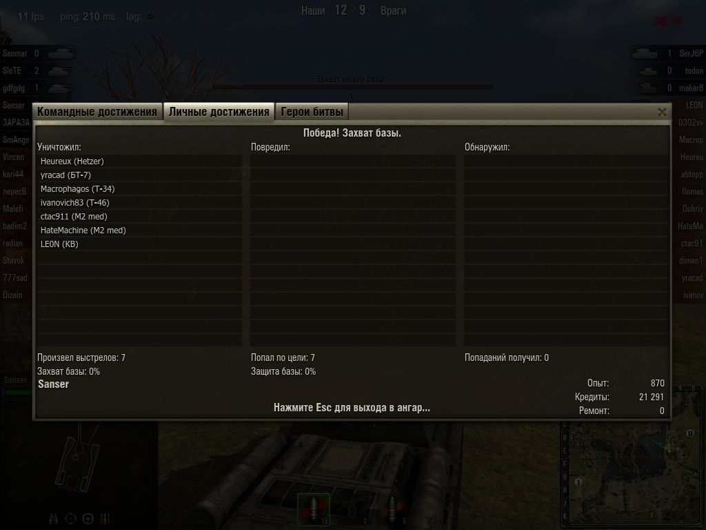 2. Добрый вечер... Вроде в условиях ничего не изменилось - Получилось 12 из 12 выстрелов, урон больше 1000 - "снайпер"-а нет, думал, есть у кого-то иного из 2-х команд - оказалось - нет ни у кого... Почему?