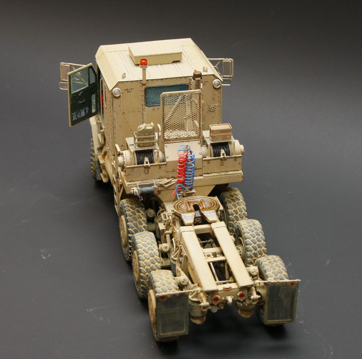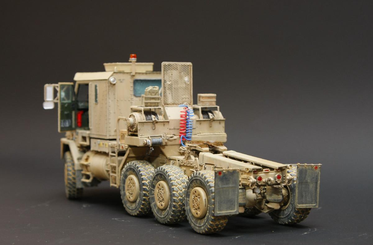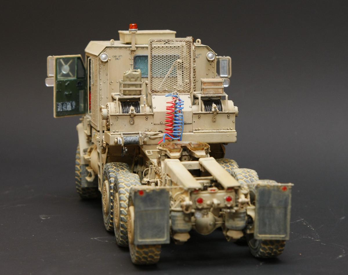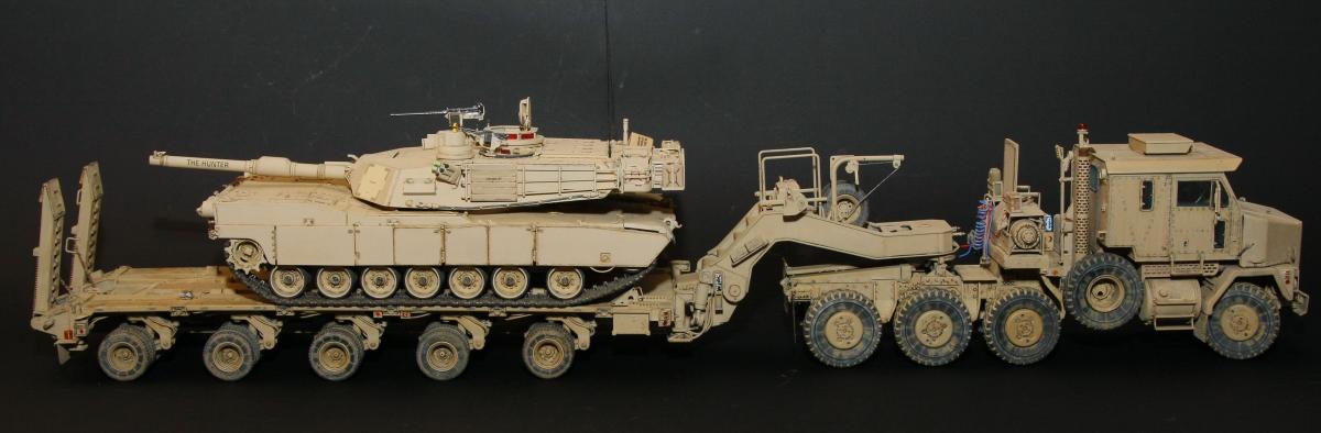 Здравствуйте уважаемые коллеги! Разрешите представить свою очередную модель, американского танка Abrams модификации M1A1 HC (Heavy Common-Общие усиление). Образ собирательный, к конкретному прототипу привязки не имеет! Модель фирмы Dragon каталожный №3535, в качестве дополнений использовалось следующее: Набор фототравления EduardBIG3535 (большая его часть не использовалась, т.к. набор разрабатывался для более старой модели Abrams от Dragon, часть просто не подошла, много травления задублировалось с родным изкоробочным, во многих местах литье гораздо лучше чем фототравление. Остались детали из ФТ внутреннего интерьера, опять же используемые в старой модели, ставить их просто не стал. Набор VoyagermodelVBS 0163 (металлический ствол 120 мм орудия, набашенные ящики для запасных гранат и сами гранаты). Набор GriffonmodelLB35024 (ствол пулемета М2 12,7 мм (cal.50)). Набор оптики AFVAC35012 (по большему счету, как смотрится оптика не очень понравилась, лаками возможно сделать по крайней мере не хуже. ИМХО) НаборсмолыLegend LF1163 M1 Abrams Stowage set. (офигенный набор, очень понравился) Металлические траки Sektor35 ST3513. Вообще, даже изкоробочный набор очень «жирный» и самодостаточный, в нем есть все необходимое для сборки отличной модели, металлический ствол и трос, неплохой набор фототравления. Литье тоненькое и очень фактурное. Стыкуемость отличная. Набор мне очень понравился, тем более, что собираю его практически второй раз, первый был 3536. Красил Tamiya, за основу брал XF 78 и подгонял цвет под AK-122 AK Interactive Краска акриловая OIF & OEF - US VEHICLES BASE COLOR (базовый цвет техники США), смывка, пигменты и другая различная химия от «Mig» и AK Interactive. Ну и конечно же фото сессия и фото превью, сделаны моим товарищем Николаем! Колёк, тебе ОГРОМНАЯ благодарность! Конечно не удержались и сделали пару фото на тягаче! Приятного просмотра!
