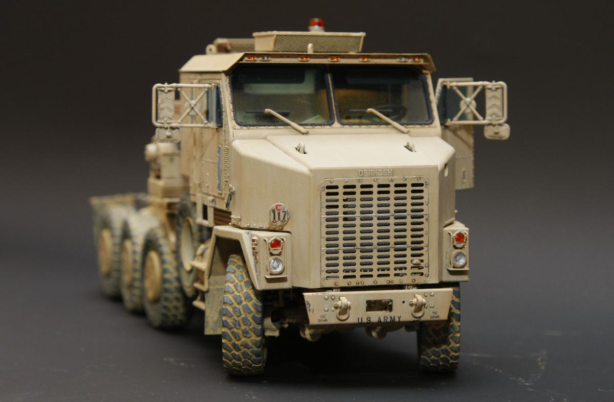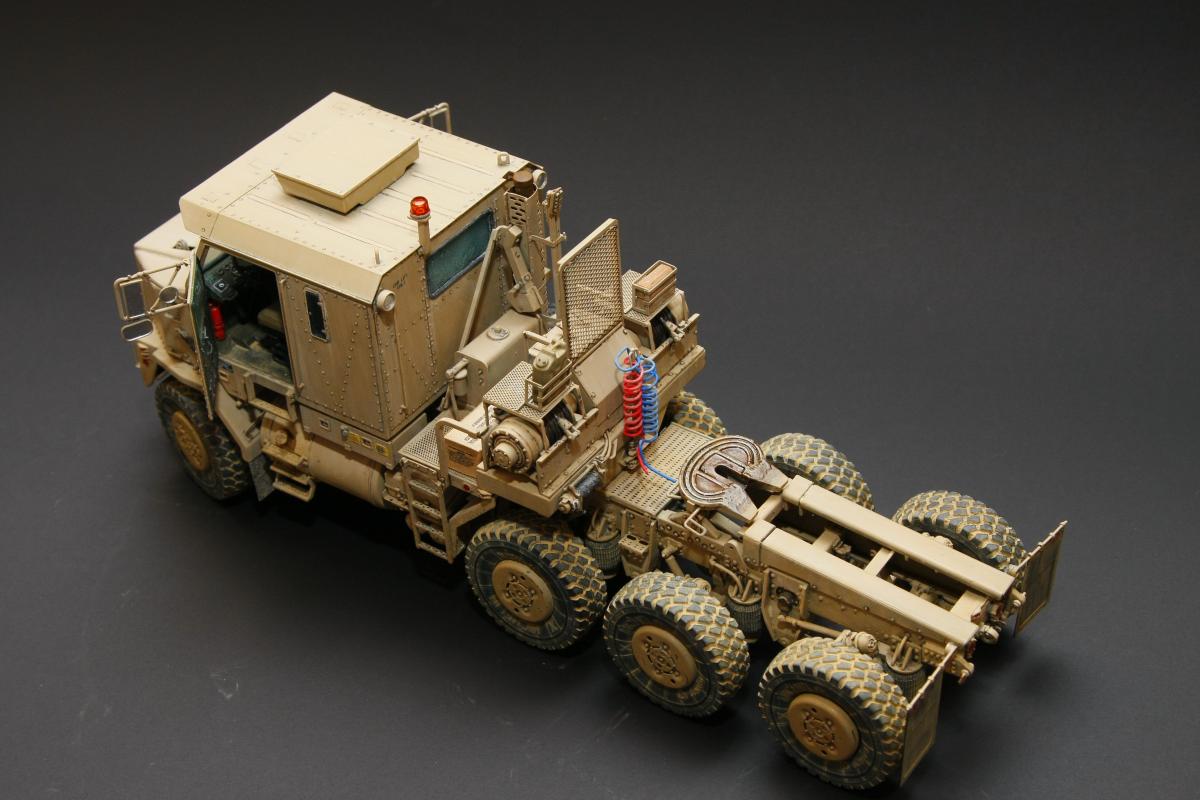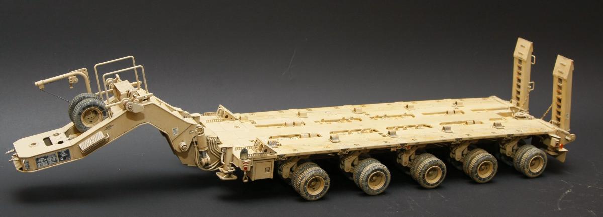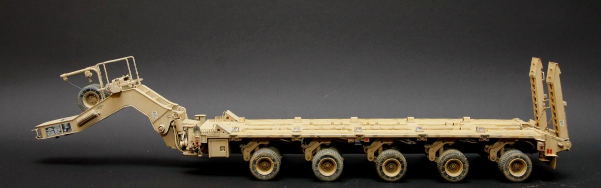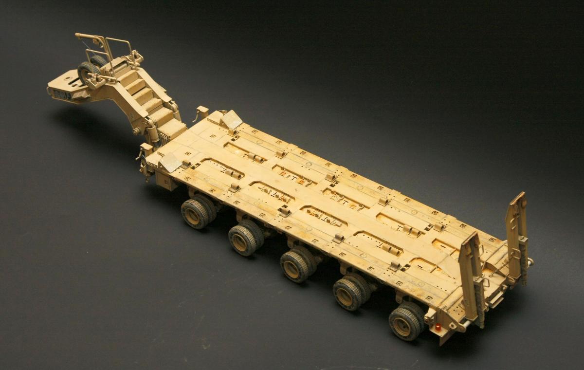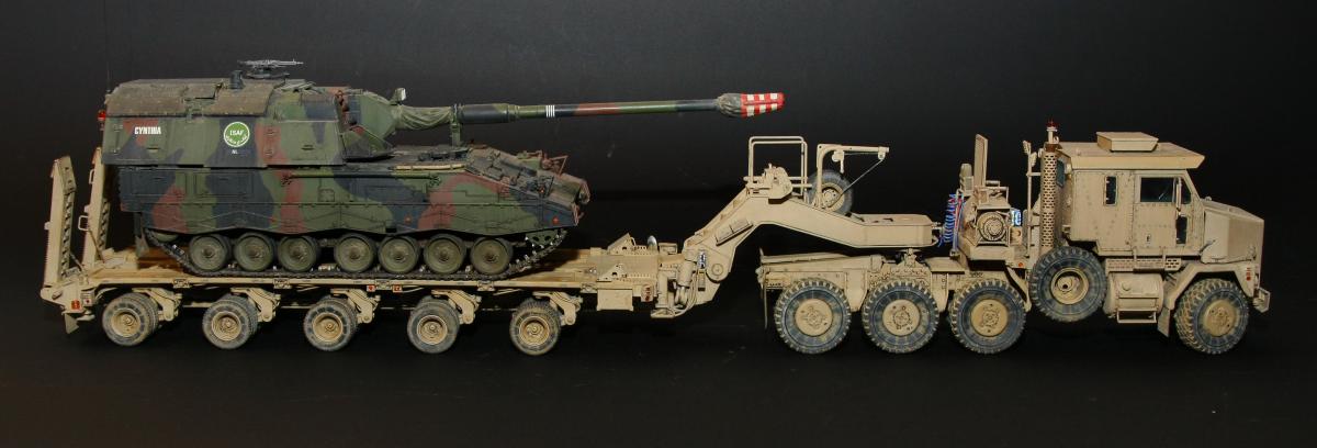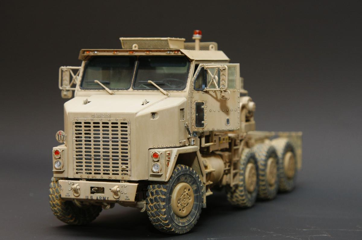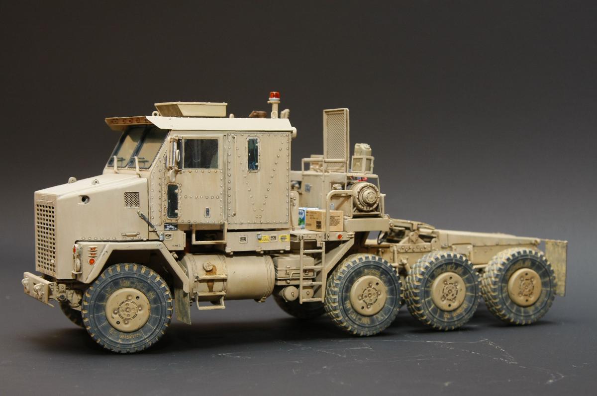 Коллеги, здравствуйте! Представляю Вам свою очередную работу-модель американского седельного тягача Oshkosh М1070 с прицепом-тяжеловозом М1000 HETS. Немного о прототипе: технические характеристики тягача и трейлера очень впечатляют, но их описание займет очень много места, поэтому просто дам ссылочку, кому интересно прочитают!http://bv.stroicar.com/equip.php?ID=689 По модели. Набор от именитой фирмы «HobbyBoss». В огромной коробке находится около 1500 пластиковых деталей, 11 плат фототравления, почти 5 метров мягкого провода для имитации гидравлики. Качество проработки деталей просто великолепное, множество деталей и механизмов после сборки остаются подвижными. http://www.super-hobby.ru/products/M1070-Truck-Tractor-and-M1000-HET-Semi-trailer.html Сборка и окраска. Если кратко, то модель очень интересная в сборке но скажем так не для новичка. Во первых на тягаче очень много выступающих деталей, как пластиковых так и из фототравления, это требует большой аккуратности при работе с моделью. Трал- изобилует массой повторяющихся деталей, по крайней мере меня это довольно сильно напрягало, сборка 40 колес, затем их сборка в 10 теле, затем проводка гидравлики к этим 10 телегам! Ну и конечно, еще на этапе сборки необходимо сразу продумывать этапы окраски, разбить модель на основные узлы, где то наложить маски, что то пока не склеивать в общем напрягать мозг!)) Красил краской TamiyaXF-78 woodendecktan. Фильтра пигменты в основном MIG. Приятного просмотра!