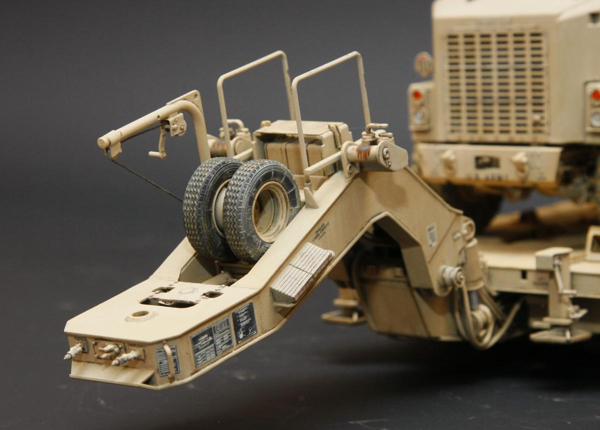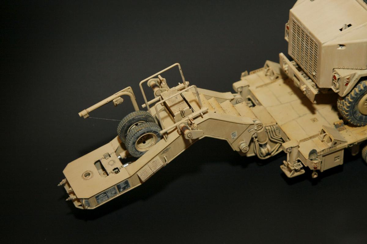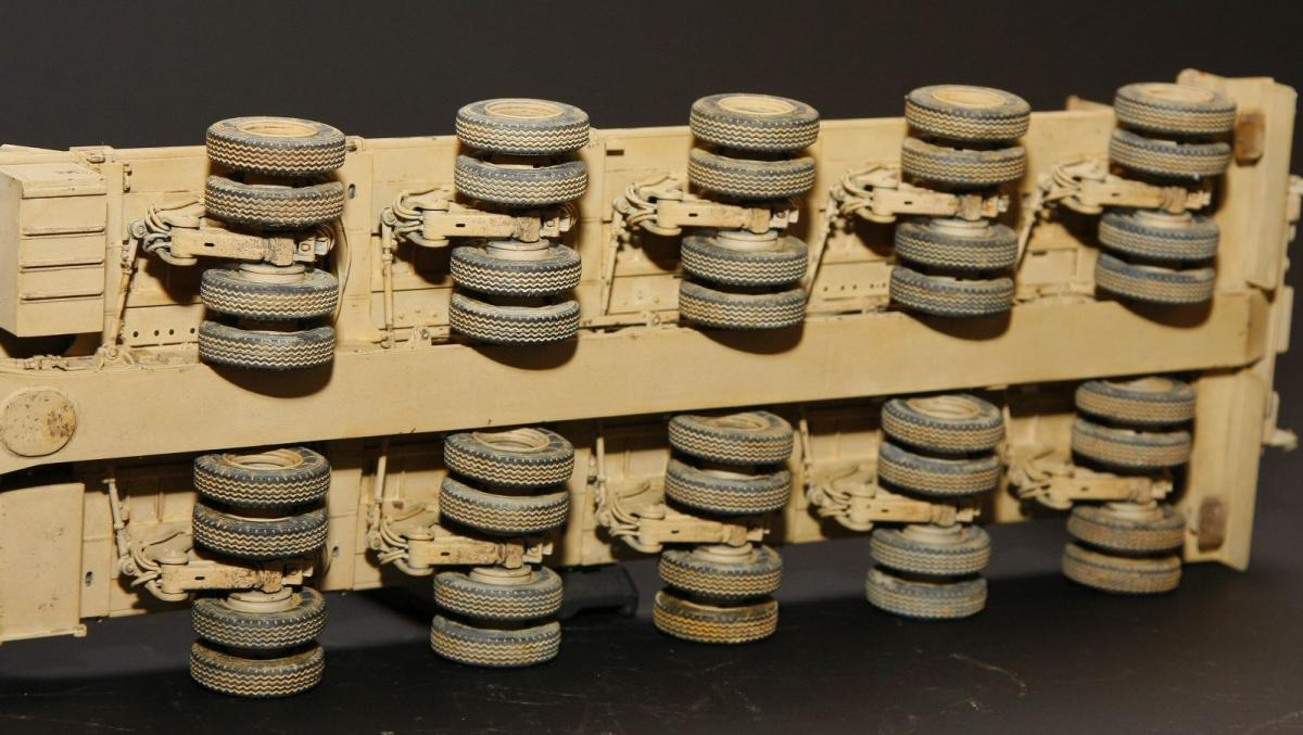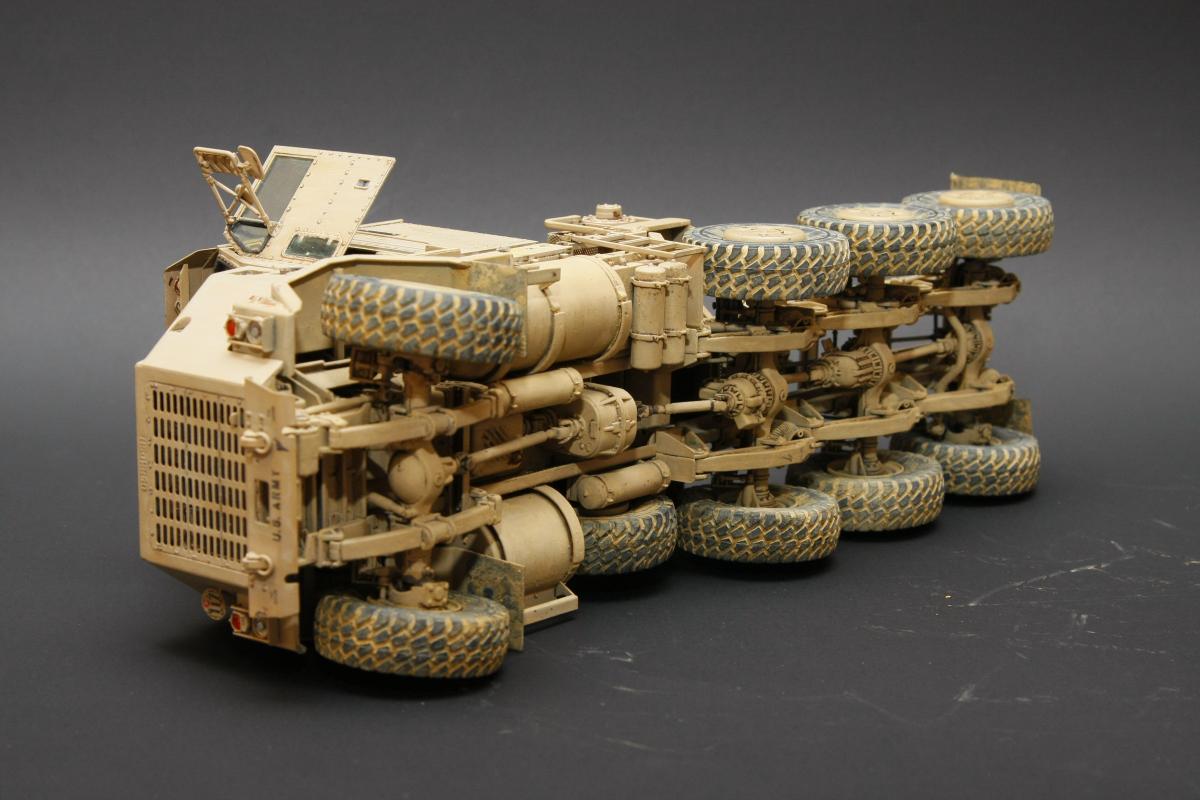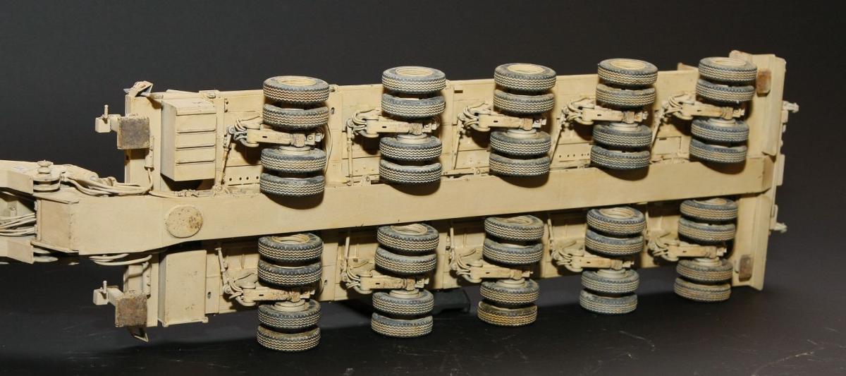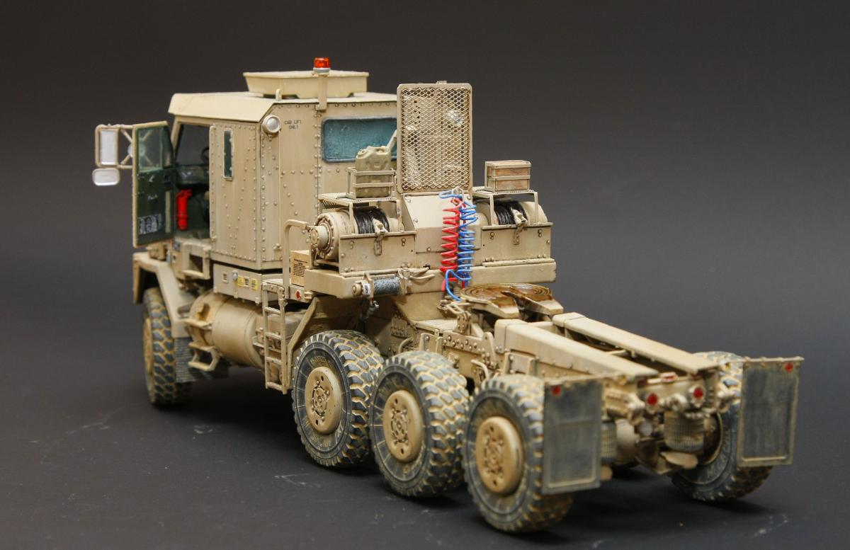 Коллеги, здравствуйте! Представляю Вам свою очередную работу-модель американского седельного тягача Oshkosh М1070 с прицепом-тяжеловозом М1000 HETS. Немного о прототипе: технические характеристики тягача и трейлера очень впечатляют, но их описание займет очень много места, поэтому просто дам ссылочку, кому интересно прочитают!http://bv.stroicar.com/equip.php?ID=689 По модели. Набор от именитой фирмы «HobbyBoss». В огромной коробке находится около 1500 пластиковых деталей, 11 плат фототравления, почти 5 метров мягкого провода для имитации гидравлики. Качество проработки деталей просто великолепное, множество деталей и механизмов после сборки остаются подвижными. http://www.super-hobby.ru/products/M1070-Truck-Tractor-and-M1000-HET-Semi-trailer.html Сборка и окраска. Если кратко, то модель очень интересная в сборке но скажем так не для новичка. Во первых на тягаче очень много выступающих деталей, как пластиковых так и из фототравления, это требует большой аккуратности при работе с моделью. Трал- изобилует массой повторяющихся деталей, по крайней мере меня это довольно сильно напрягало, сборка 40 колес, затем их сборка в 10 теле, затем проводка гидравлики к этим 10 телегам! Ну и конечно, еще на этапе сборки необходимо сразу продумывать этапы окраски, разбить модель на основные узлы, где то наложить маски, что то пока не склеивать в общем напрягать мозг!)) Красил краской TamiyaXF-78 woodendecktan. Фильтра пигменты в основном MIG. Приятного просмотра!