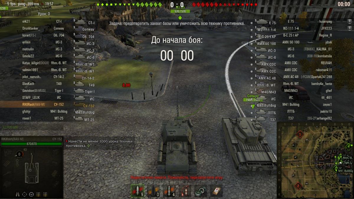 2. Уважаемые разработчики и игроки нашей замечательной игры...Я столкнулся с проблемой, когда я захожу в бой над иконками снарядов красными маленькими буквами написано: Недостаточно места на диске.Пожалуйста перезапустите игру. И в этом же бою иконки техники, следы от гусениц, пыль, дым и т.п. становится красного цвета...(( Иногда игра сама перезапускается...на D: диске на который скачана игра места полным полно, кто знает как помоч помогите пожалуйста Нет Ребятки Неволнуйтесь на счёт микроволновки..Комп нормальный 3гб оперативки с видео картой в начале боя часто такое бывает а потом все впорядке))и спасибо за советы