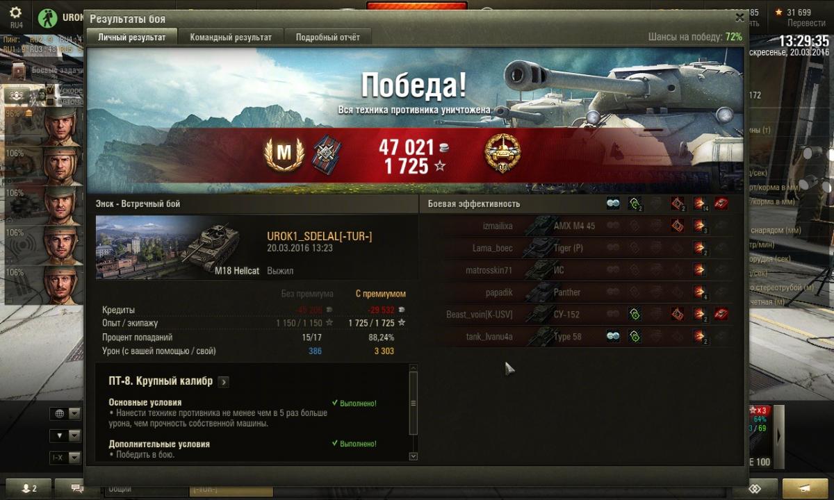 Ну и я тоже плакаться!)) Проверенный способ! 100% помогает!)) Итак... 3 арты грохнул на второй бой после взятия задания, хотя когда-то потратил 3 месяца только на это ЛБЗ, Зато теперь возникли трудности с СТ-15: вкачал ветку центуриона, накатал 200+ боев на АМХ СДС (получил 3 отметки), а боев с подходящими условиями просто нет... Либо бой твоего уровня, либо просто нет ПТ нужного уровня по вражеской команде. На центурионе 7\1 пару раз ПТ попадались, но у этого ***супер танка хеши вместо голды и, соответственно, рубку ЯГПЗЕ100 они не пробивают... когда-то выполнил это задание на леопарде, но сейчас леопарда нет (т.к. другой аккаунт)... кто на чем выполнил с отличием? Есть 54, но и на нем уже давно 3 отметки,к тому же на нем почти фул голда и стабильный минус...