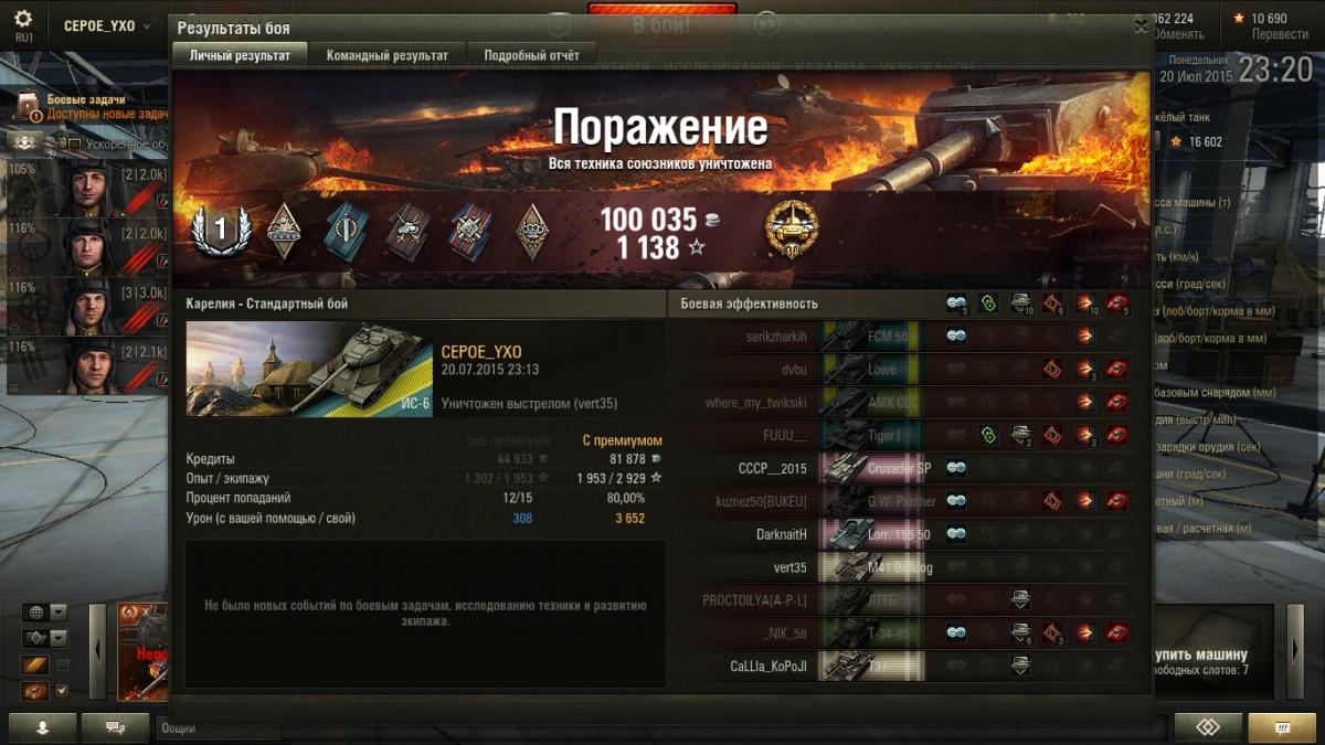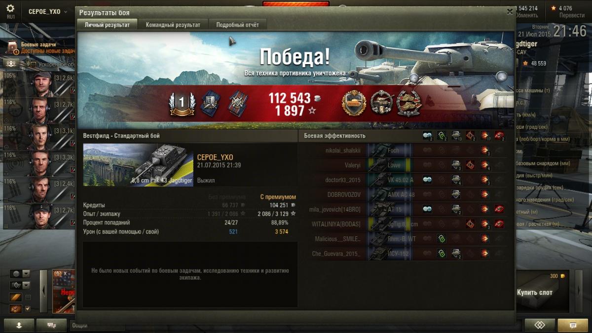 в течении месяца у меня будет десятка думаю, а так если будет желание пофармить, буду рад общению и покатушкам, а это так...пару минут назад бой был, сам тащил, как обычно, мог война взять, но артобибер подсосал шестой фраг ПОБЕДА!ИС-6ФьордыОпыт за бой: 2 387 Опыт экипажу: 3 580Кредиты за бой: 118 062Доход за бой: 92 618 Достижения: «Костолом», «Заговорённый», «Стальная cтена», «Дуэлянт», «Основной калибр», «Непробиваемый», «Боец», «Огонь на поражение», Знак классности «Мастер»