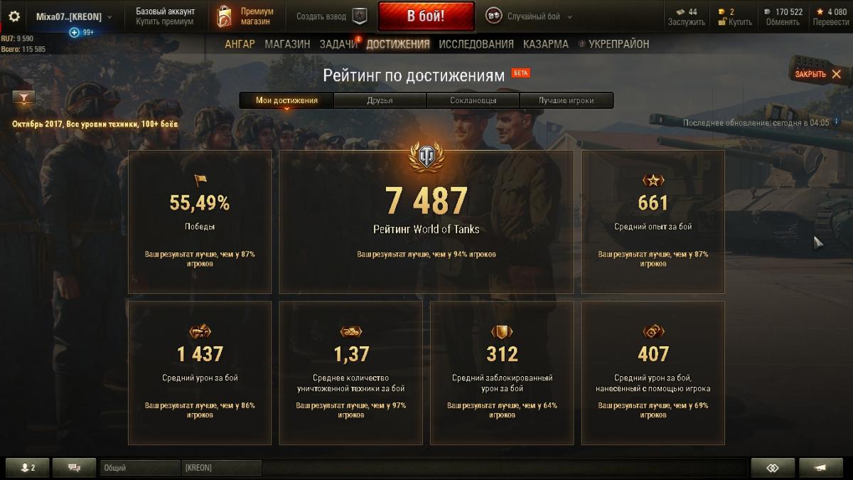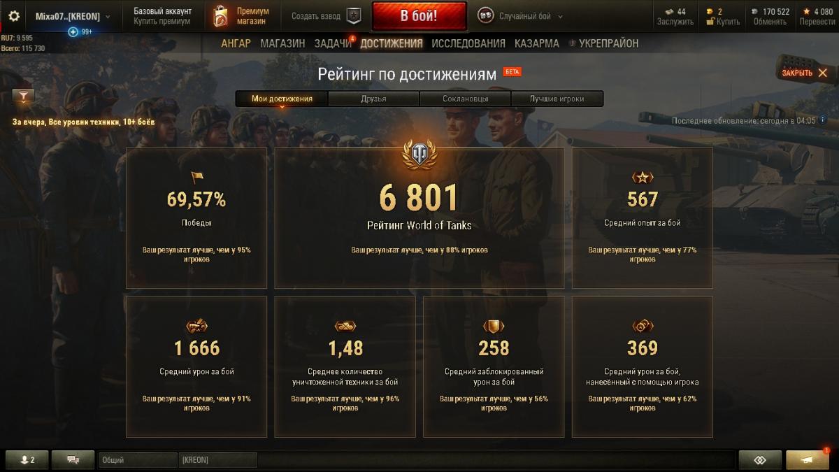 Уважаемые танкисты и разработчики игры дайте ответ на мой вроде простой, но в тоже время сложный для меня вопрос, какова структура поднятия нового рейтинга. Приведу примеры своего нагиба по 400 боям и в отдельности за день. Статистика по 400 боям http://cdn-frm-eu.wargaming.net/wot/ru/uploads/monthly_10_2017/post-48038641-0-85926900-1508131808_thumb.jpg Вчерашняя за 1 день http://cdn-frm-eu.wargaming.net/wot/ru/uploads/monthly_10_2017/post-48038641-0-97093100-1508131921_thumb.jpg За вчерашний день я смотрю что по всем показателям я играл лучше чем то что показано по общей за 400 боёв, но почему рейтинг вчерашних боёв ниже чем в общей? Технику не менял! За счёт чего поднимается рейтинг? Да к стати премиум аккаунт значительно влияет на средний заработанный опыт за бой, я его опустил без према в НЕТ! P.S. Скиловики которые не кидаю деньги на премиум аккаунт по новым показателям рейтинга станут на ступень ниже среднего статистического игрока который на премаке долбит средний опыт, так как опыт первый показатель поднятия нового рейтинга!