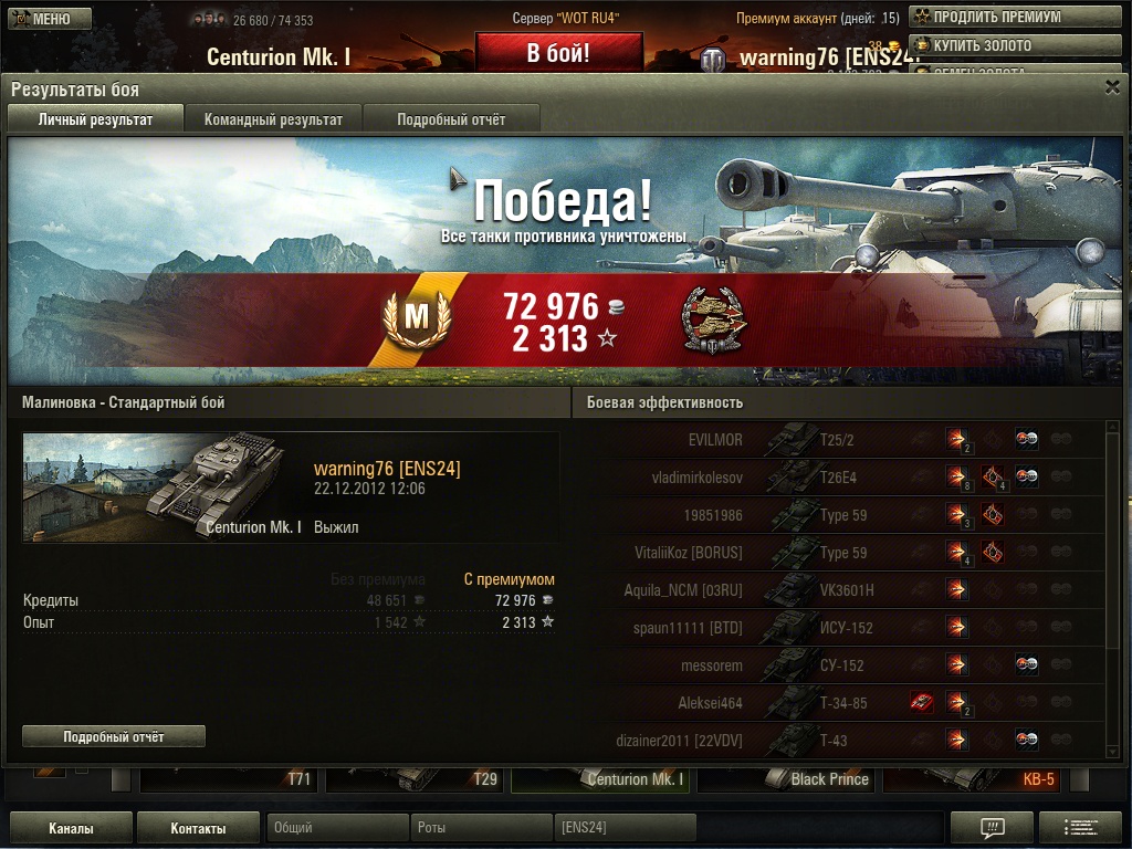 Кто катал на центре спокойно с ним справится. Только одна у него по настоящему проблема. Он не фармит!чтобы привезти 30-35к чистыми нужно накидать 2'5к+ и ещё неизвестно сколько насветить. Мой старик кв5 если накидает 2к+ привозит 40-45к чистыми. А ЭТО привозит в среднем 15-25к что просто смешно для према 8лвл. Столько же привозит немецкая шкода т25,Прем 5лвл Карл!18-20к+.и делает это не напрягаясь 5 лвл ведь. А здесь потные бои с десятками. С его ТТХ чистый хардкор. Ладно я по марафону его получил. Но ведь ЭТО поставили на продажу. Логичный вопрос. Кто будет покупать Прем 8 лвл за три косаря когда можно купить за 700 деревянных Прем 5 и привозить примерно столько же денег не напрягаясь.