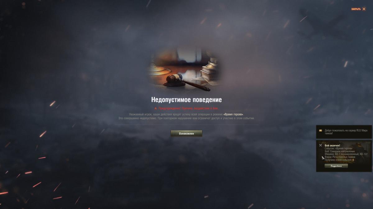 Во время игры в событии время героев обычно после первого боя, либо во время второго боя, игра просто тупо встает, ничего сделать невозможно. Не помогает ничего , кроме перезагрузки компа, Модов нет, давно не ставлю, комп соответствует требованиям! Да и не было такого никогда в игре. Так вот последний бой, опять зависание клиента игры и после того как зашел, вижу такое вот сообщение! Больше туда не заходить? Ведь этого не было во время первых героев!!!