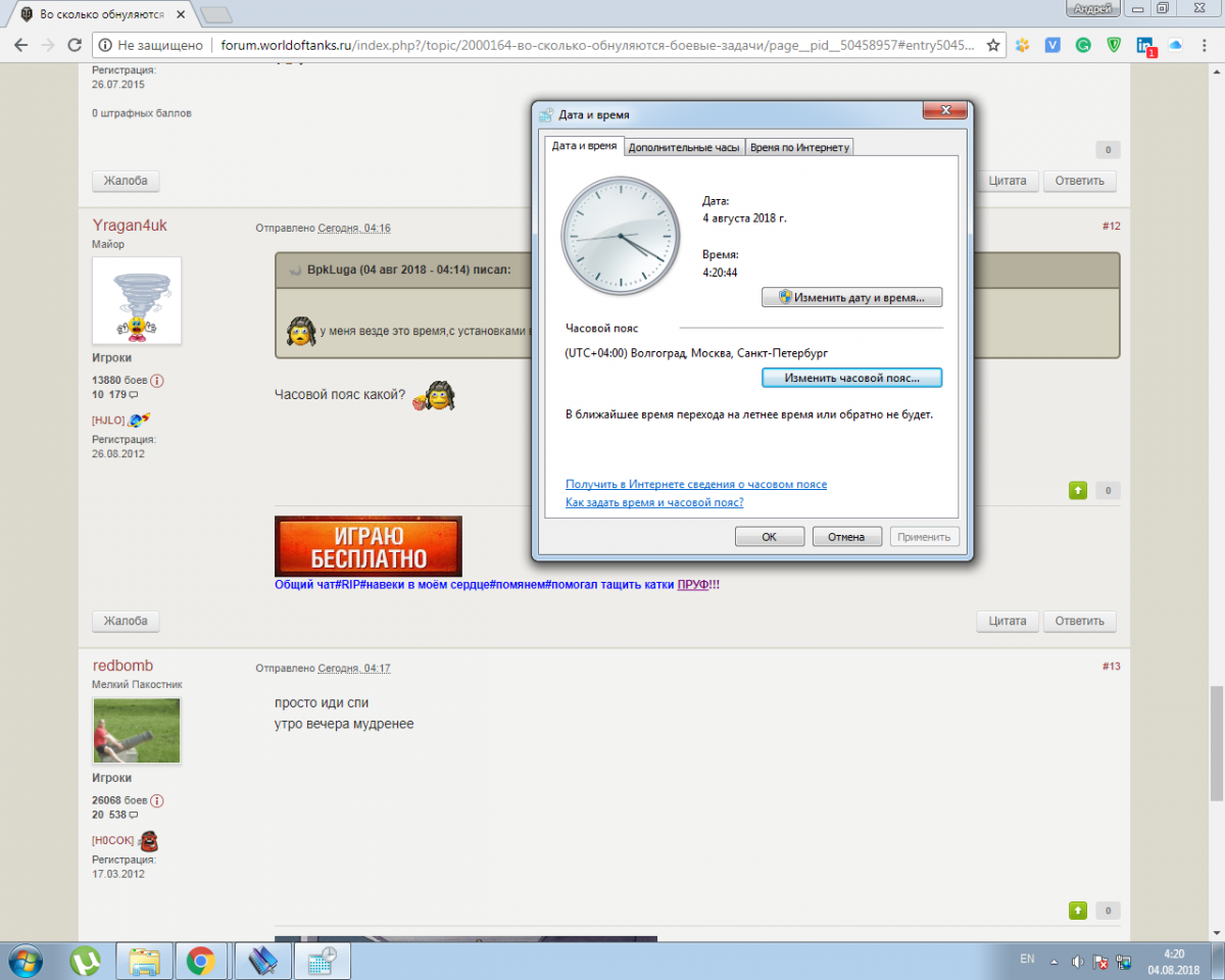 Во сколько обнуляются задачи на 2 сервере???проживаю я в городе Луга это 1 часовой пояс с Москвой,обратите внимание на моё время в ангаре и на время сервера в бою,а задачу не защитали так во сколько обновляются боевые задачи на 2 сервере?????