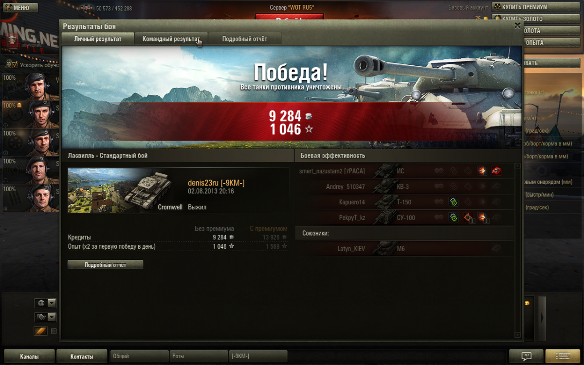 Дозорный Награждается игрок, если по его индивидуальной засветке (он один засвечивал танк в момент повреждения) было повреждено 6 и более танков. В зачёт идут цели, разведданные по которым в момент их повреждения передавал только один игрок. В случае равного количества повреждённых танков при засвете, который был реализован разными игроками, приоритет принадлежит игроку, получившему больше опыта. При равном количестве полученного опыта звание не присваивается. Не выдаётся в клановых войнах и специальных боях.