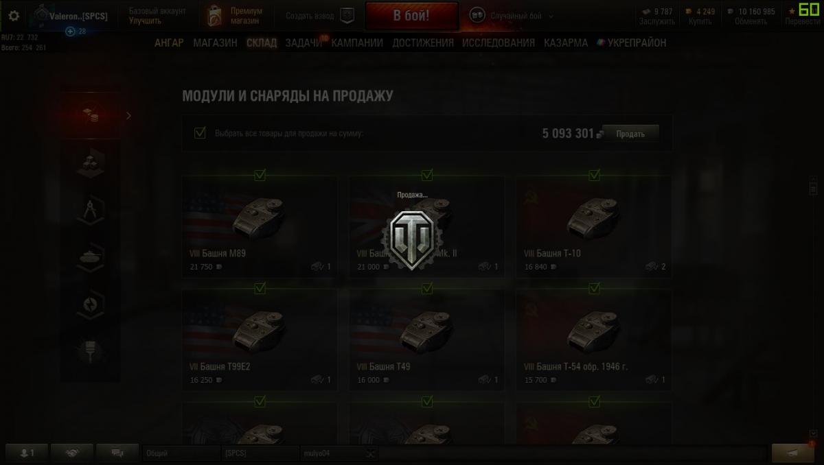Добрый день! Не получается продать вещи на складе: проблема появилась не вчера и не сегодня. При попытке продать всё сразу кнопка "Продать" вроде бы нажимается, но ничего не происходит. А если продавать по одному, то вот так висит (скрин). Приходится закрывать alt+f4. Проверял целостность файлов клиента, запускал клиент в безопасном режиме - ноль изменений... http://cdn-frm-eu.wargaming.net/wot/ru/uploads/monthly_05_2019/post-4843922-0-13925300-1558771271_thumb.jpg