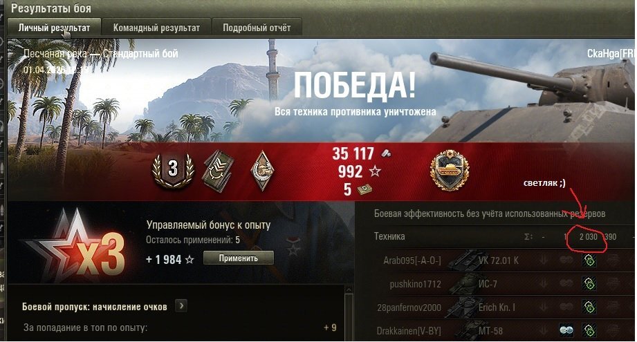 Акция неплоха - ничего специально делать не надо, а халява капнет. Но... Леста продолжает пилить сук, на котором сидит. Акция порадила больше недовольства. чем радости. Рандом и так стал безобразным. Подобная акция только усиливает негатив - бешенные ЛТ, которым пофиг на команду, "умники" с 1 снарядом.... Гораздо лучше, например, было бы выдавать награду за классность. Получил 1-ую - на 10бон, получил 2-ую - получи кусок золота. И бонус есть и ни к каким нарушениям не приведет