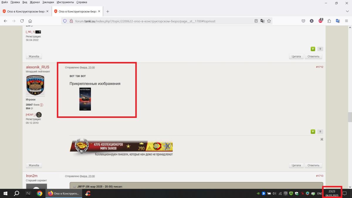 Народ, всем привет! Я что-то прикола не пойму: в новости написано, что событие начнётся 06.03.2025 в 20.00 мск. У меня время мск+2, то есть, у меня должно начаться в 22.00 по местному времени. Сейчас 23.30, то есть, прошло полтора часа, но плашки конструкторского бюро в игре нет. При этом на форуме вижу сообщение вчера в 23.00, что номерной танк получен. Что за прикол не пойму? Вместо 06.03.2025 в 20.00 событие началось 05.03.2025 в 21.00 или что? Ничего не понимаю.