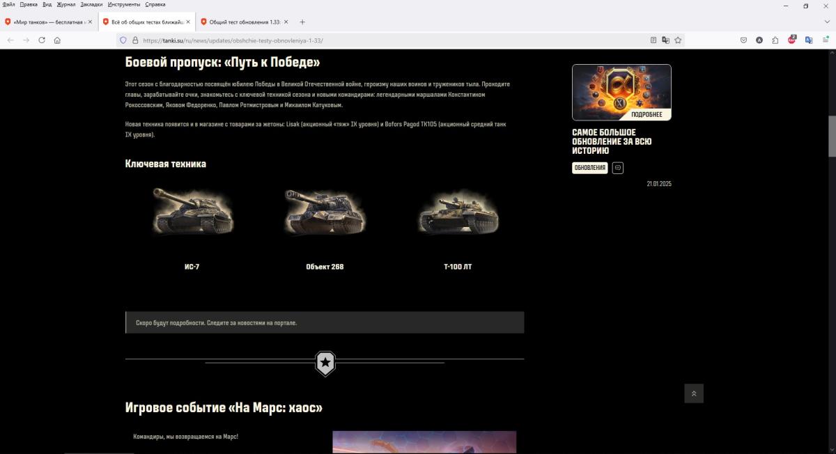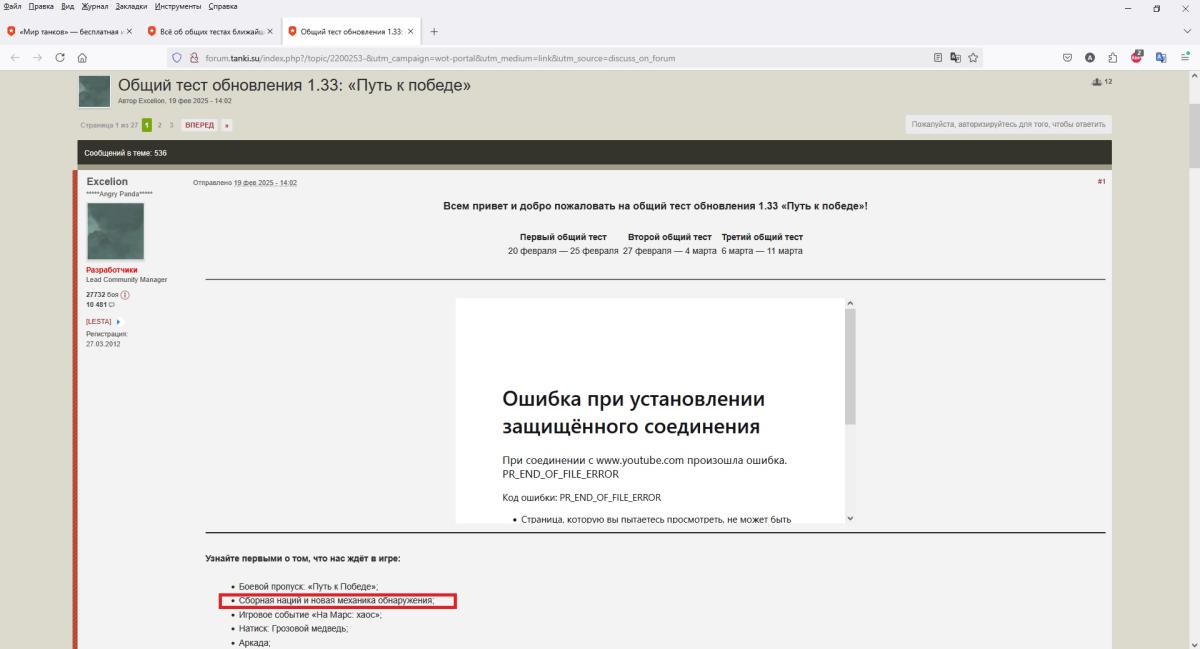 Что-то не понял: на форуме после первого пункта "Боевой пропуск" идёт второй пункт "Сборная наций и новая механика обнаружения". Пункт "Игровое событие «На Марс: хаос»" идёт третим (см. файл "02"https://forum-mt-prod.lesta.ru/emoticons/Smile_blinky.gif. А на портале первым идёт "Боевой пропуск" а вторым "Игровое событие «На Марс: хаос»". Пункта "Сборная наций и новая механика обнаружения" вообще нет! (см. файл "01"https://forum-mt-prod.lesta.ru/emoticons/Smile_blinky.gif. В итоге не могу прочитать п ро сборную наций и в частности, как пользоваться этим пирометром.