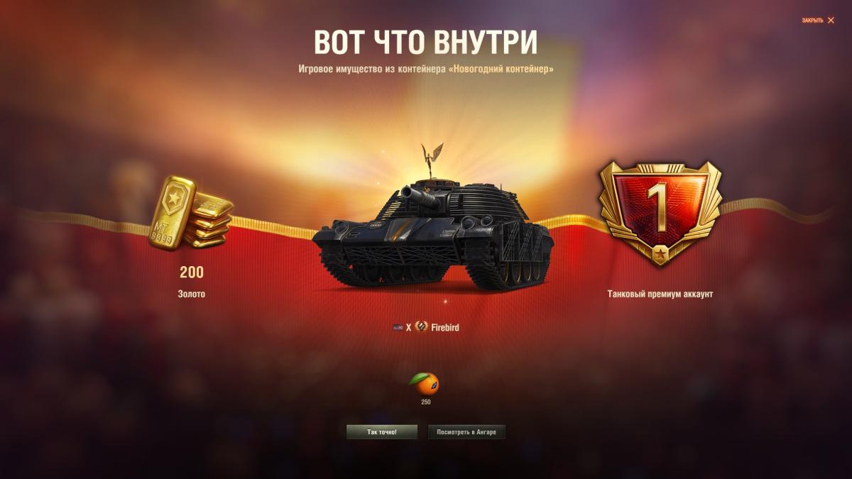 Ай, хорошо, ай кайфово! 10 контейнеров открыл за раз - 2 десятки второго этапа и легендарный контейнер! Сегодня ещё 10 открыл по одному - на последнем Firebird) Осталось ОТАС взять, чтобы с разными орудиями играть). А, ещё и деда мороза Бурунова в автомате взял). Кстати, разрабы - не успел себя заскринить в аллее Firebird. Можно эту аллею целиком где-то посмотреть? Или только на сайте последних показывает?