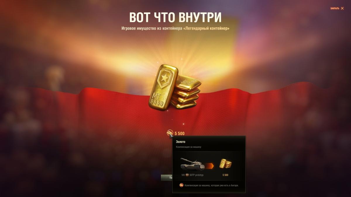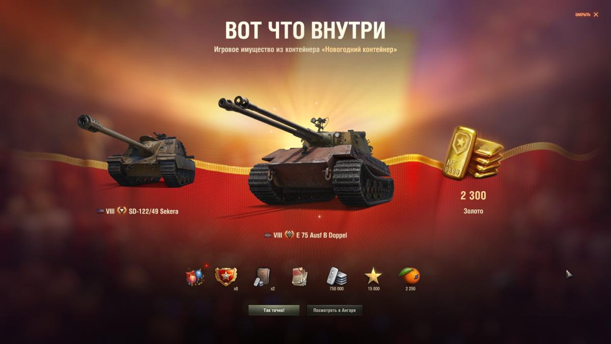 Взял по предзаказу 92 контенера один пакет, 10 конейнеров за бабки по спецпредложению и 5 за голду. Итого 107 контейнеров. На 24 выпал 3D-стиль для Т92, на 25 Об. 703 вариант 2 (100). Думал, что он у меня есть, но то был 122. Со злости сразу открыл 10 контейнеров и выпало аж 2 према!) Потом за следующие 10 выпало сразу 2 3D-стиля!) И ещё 2 легендарных контейнера, за которые получил 5500 голды компенсации. Короче за все эти контейнеры закрыл 1 этап: выбил все 4 стиля и 4 танка из первого этапа (Стиль "Дитя грома" и танки Чар мле 75 и Т-54Б были в наличии).