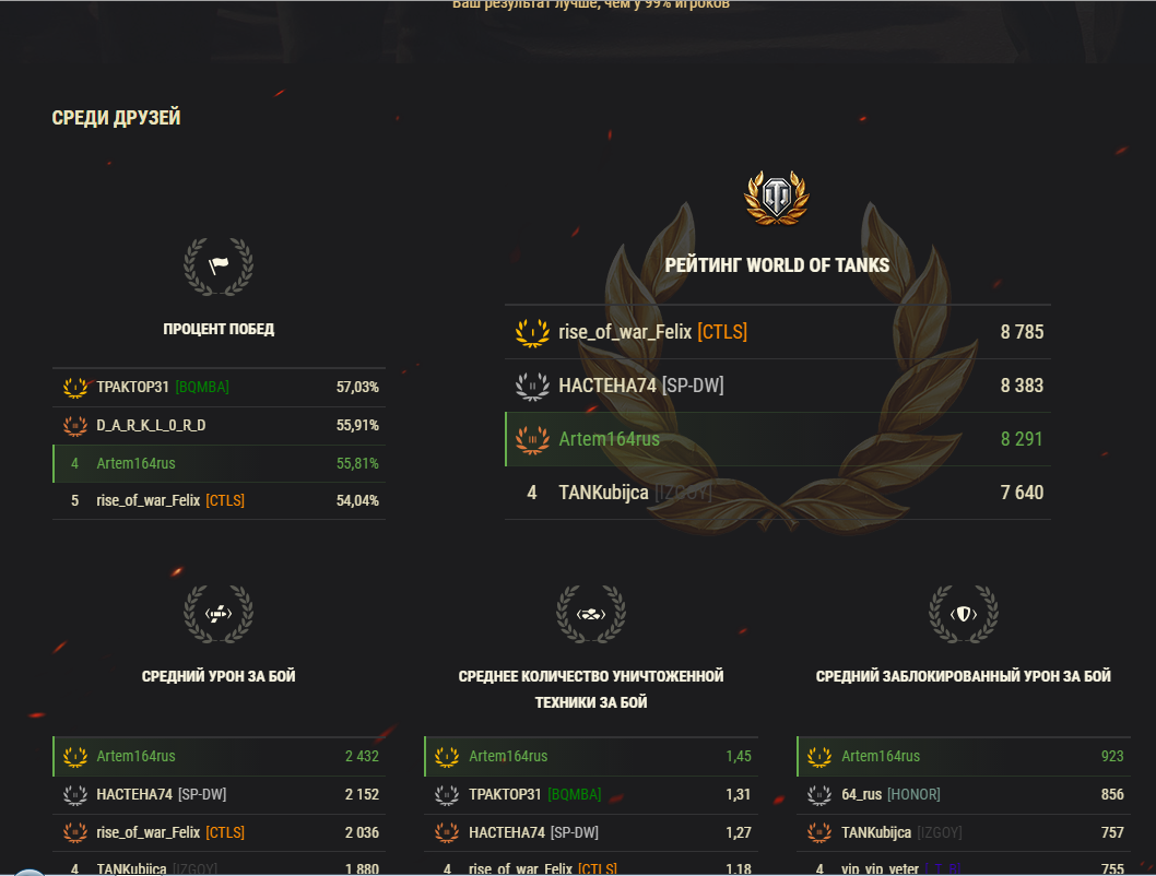 http://cdn-frm-eu.wargaming.net/4.5/style_images/wg/snapback.pngJoker13_RUS (30 янв 2019 - 18:47) писал: Cложно, я только что Балтикой закинулся... В общем, есть контакты в игре (клиенте), а есть друзья, и соответственный Зал славы среди друзей (тут). И тут есть разные челики. Выражаться яснее не могу... У меня такая же фигня, на сайте показывает какие то левые ники, а в клиенте нет таких.