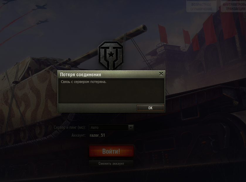 Проверял и без WiFi и только по WiFi, один результат. И с одним пров-ом, и с другим, и с обоими вместе (multiWan). В ангар попадаю с 3-4-5 попытки, подключение хватает на 1 -2 боя. Далее разрыв и по новой... С кораблями таких проблем нет.