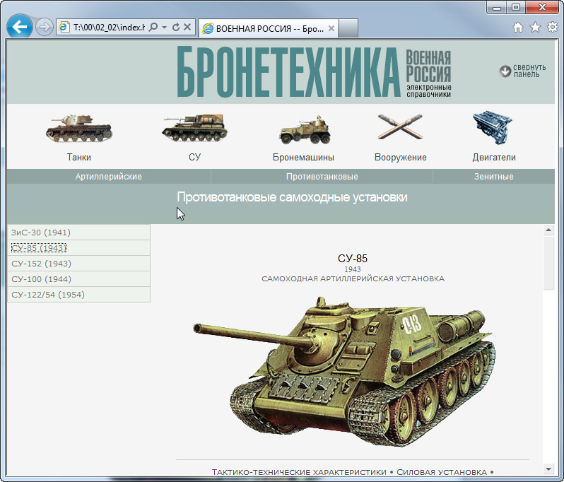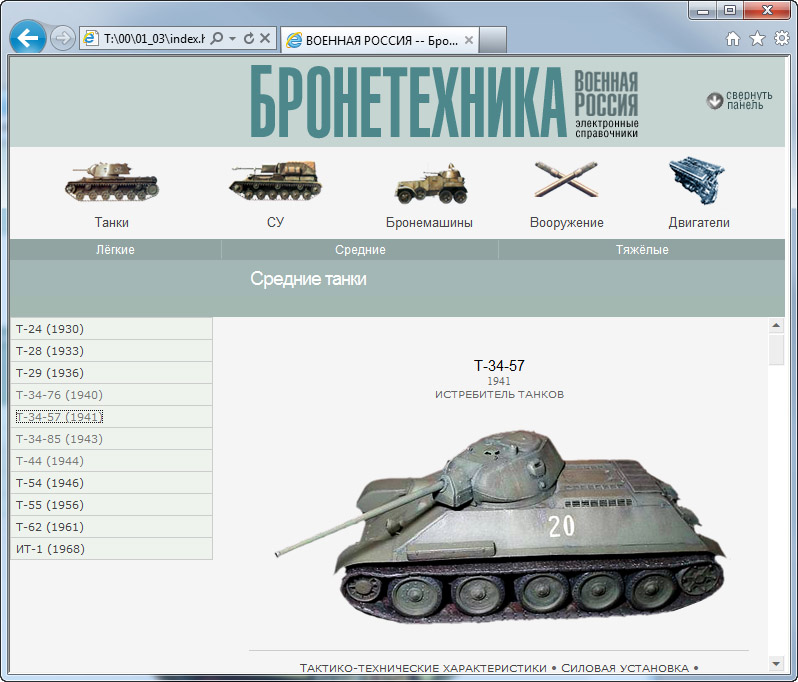 Электронная энциклопедия «Военная Россия: Бронетехника» содержит обширные сведения о танках, танкетках, самоходных установках, бронеавтомобилях, боевых машинах и танковых двигателях. Справочник рассказывает о бронетанковом вооружении периода Второй Мировой войны, а также о предвоенных моделях, которые широко использовались на ранней стадии войны. Кроме этого, на диске собраны данные о современной российской военной технике. Электронная энциклопедия «Военная Россия: Бронетехника» имеет удобную навигацию, несколько видов классификации (по типам техники, по назначению, по массе, и т.д.) и различные критерии поиска информации. Структура электронного справочника о бронетехнике мало, чем отличается от предшествующего сборника: он также разбит на тематические разделы. Любители военной техники смогут познакомиться со следующими рубриками: «Танки», «Самоходные установки», «Бронемашины», «Вооружение» и «Двигатели». В разделе о танках содержится информация о самых разных моделях, начиная с Т-24 и заканчивая Т-90. Включены сведения о малых, легких, средних и тяжелых видах танков. Даны их описания и технические характеристики. Материалы о двигателях разбиты на две подгруппы: дизельные и карбюраторные. Здесь любознательные пользователи найдут подробную информацию о количестве цилиндров, их объеме, мощности и т.д. А вот рубрика «Самоходные установки» познакомит поклонников оружия с особенностями артиллерийских, противотанковых и зенитных СУ. Раздел о бронемашинах расскажет об их тактико-технических характеристиках, основных модификациях и множестве других интересных сведений. Благодаря представленной в этой части справочника информации пользователи узнают характеристики таких видов техники, как бронеавтомобили, бронетранспортеры, боевые разведывательные машины и т.д. Сведения о пулеметах и пушках собраны в тематической части «Вооружение». Знакомясь с этим разделом, можно почерпнуть немало полезных данных об этих видах оружия: их калибрах, длине стволов, максимальной дальности, практической скорострельности в минуту и др. Путешествуя по страницам электронной энциклопедии «Военная Россия: Бронетехника», любой желающий не просто интересно проведет время, но и познакомиться с историей нашей страны. Особенности продукта: – 5 тематических разделов; – детальная характеристика всех типов бронетехники, вооружения и двигателей; – несколько видов классификации (по типам техники, по массе, и т.д.); – удобная навигация и различные критерии поиска данных (по алфавиту, по назначению); – возможность сохранять, распечатывать и пересылать по электронной почте любую информацию из справочника. Установка: Не требуется. 1. Смонтировать образ диска на виртуальный привод. 2. Запустить файл index.html. 3. Пользоваться. P.S.сори если боян http://torrent-windows.net/programmy/raznoe/9638-voennaya-rossiya-bronetehnika-mediahauz-l-2005-russkiy.html