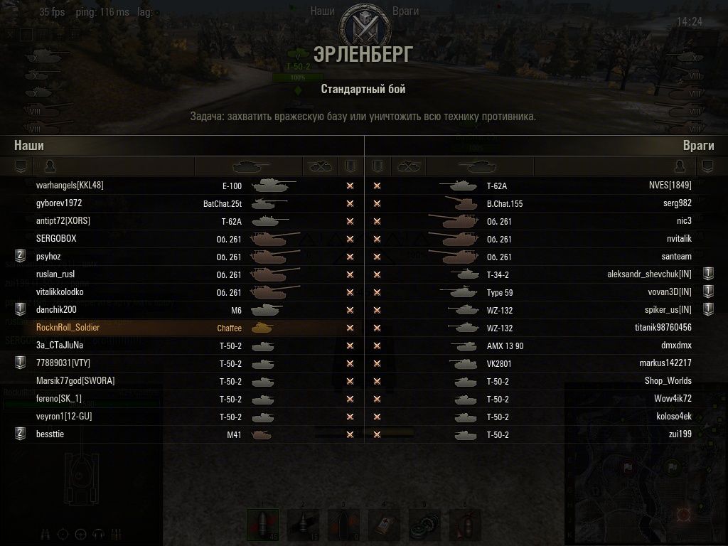 Доброго времени суток ребятушки. Ищу совзводного, можно и не одного, рэ1500+, 55+ и тд. и тп. Взвод собирается без опреленного онлайна, на любое количество боев, например на вечер, без связи и особых тактик. Просто 2-3 грамотных и самостоятельных танкиста, получающих удовольствие от игры. Приятно знать, что ты не один против 28ми, а вы уже хотя бы в двоём. Техника 8-9-10. Немножно о себе http://worldoftanks.ru/community/accounts/5148877-RocknRoll_Soldier/, 1694 рэ.