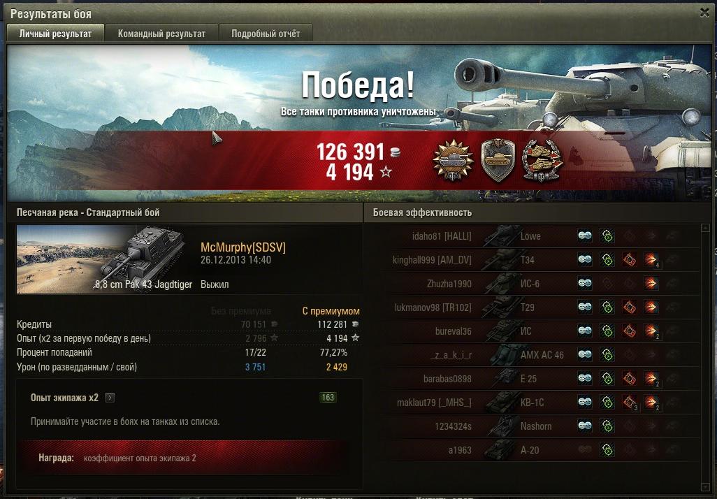 Отпишусь, пожалуй, про модули и перки. Почитал, что тут пишут мастера по 8.8 и решил поэкспериментировать. Было: досыл, масксеть, маскировка 100%. Перезаряд (по картошкиному таймеру) 4,66 Стало: досыл, масксеть сменил на вентиль, маскировку заменил братством. Перезаряд - 4,46. При этом стал светиться в таких местах, где раньше никогда не светился. Пока некоторое время покатаюсь так, оценю все плюсы и минусы, но скорее всего во время ближайшей скидки на переобучение экипажа верну все как было. По-моему, разница в 0,2 секунды не так критична. Не так уж часто 0,2 секунды что-то решают. А вот в некоторых любимых нычках уже безнаказанно не посидеть. Ясное дело, что это не абсолютная истина. Каждому стоит самому подбирать всё под свой стиль игры.