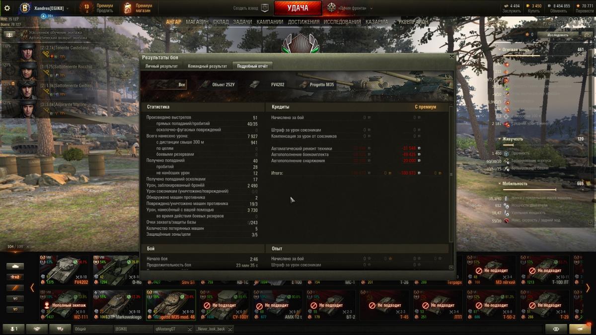 http://cdn-frm-eu.wargaming.net/4.5/style_images/wg/snapback.pngDoktor_Mozg (13 фев 2019 - 00:46) писал: В каком ты бою был, если сам написал что после захода не смог выбрать танк? В бою - это когда твоя машина в бою. У меня такого не будет, ибо уже года 2 играю без модов вообще, и ни единого раза никаких глюков с клиентом у меня не было. Если успеваешь вернуться в бой - тогда нормально всё, если нет - тогда это дезертирство, вне зависимости от причин. Ты либо в ЛФ не играл либо под дурачка косишь? Если у тебя технику уничтожили на ЛФ а танк неподвезли ты висишь в воздухе с Командиркой и ждешь таймер когда танк появится? Может тогда всех у когдо танк уничтожен минусовать??? Еще раз причем тут МОДЫ и Сервер ВГ???? Если я в бой вернулся!!! Статистику и результаты обсчитывает сервер а не мой комп, вывод баг на сторе ВГ!!!