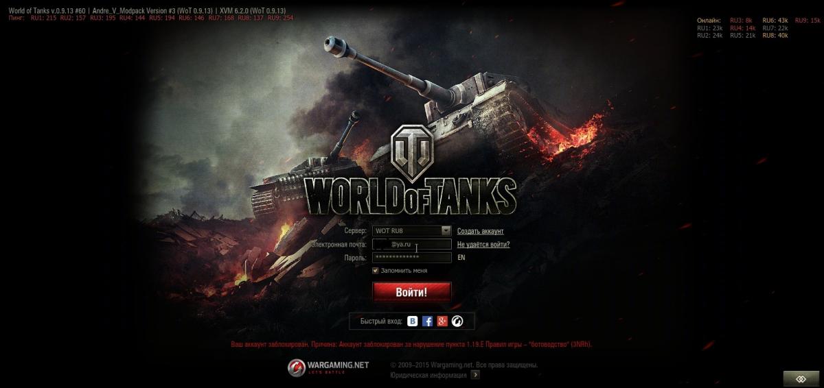 Мой акк забанили за использования бота, а я не отродясь им не пользовался, не доверяю сторонним программам, играю своими ручками и добиваюсь порой успехов. А какой то "не хороший человек" пожаловался на меня что я пользуюсь ботом и меня заблокировали. Интересно ЦПП когда принимают жалобы на игроков проверяют нарушение или просто банят, как было дело со мной. Пусть тот "ябеда" школьник который жаловался на меня предоставит доказательства, скрины или видео боя где он думает что я бот. А так ни за что заблокировали, а ещё на акк имеется прем, пока разберутся он закончиться. А я этот прем как и танки покупал за реальные деньги, что за махинация, покупай технику и прем а после тебя заблокируют за "ботоводство" которое ТЫ НЕ ИСПОЛЬЗОВАЛСЯ.