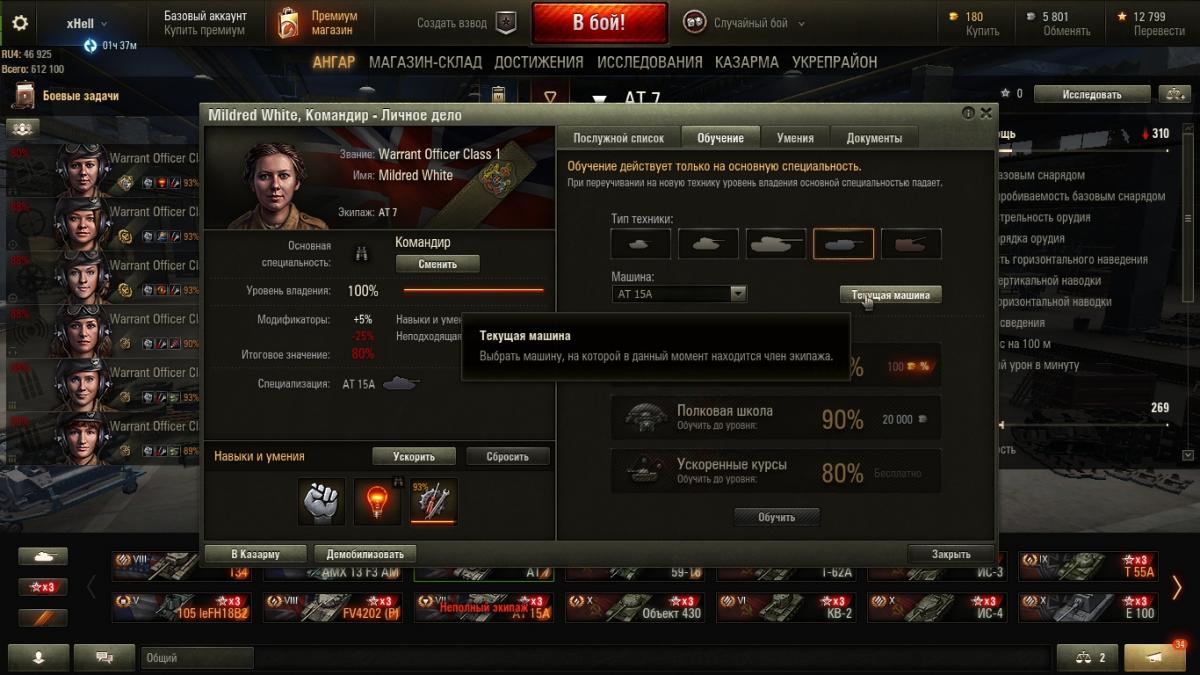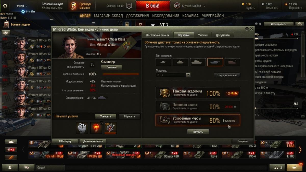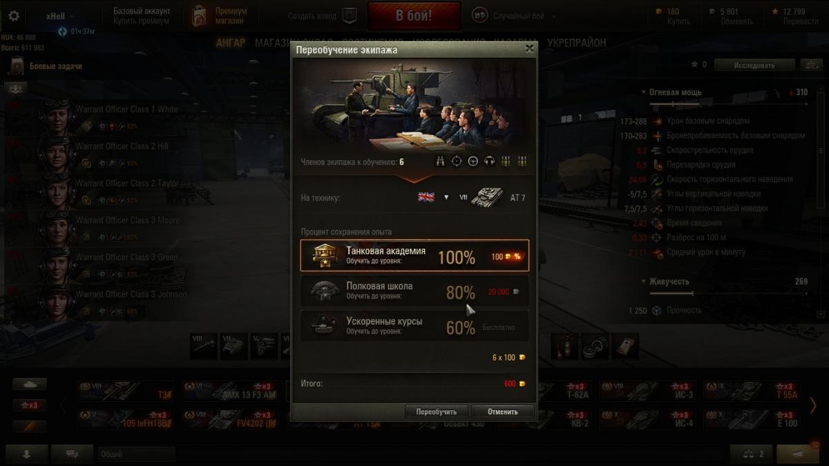 что за баг?: пересадил экипаж с ат15а на ат7 путался переобучить всех сразу через "удобную кнопку" над экипажем и.... предлагаются варианты: переобучить за голду на 100%, переобучить за серебро на 80%, а бесплатное переобучение на 60% не активно! тогда как индивидуальное переобучение членов экипажа предлагает варианты: переобучить за голду на 100%, переобучить за серебро на 90%, а бесплатное переобучение на 80%!!! Почему так?