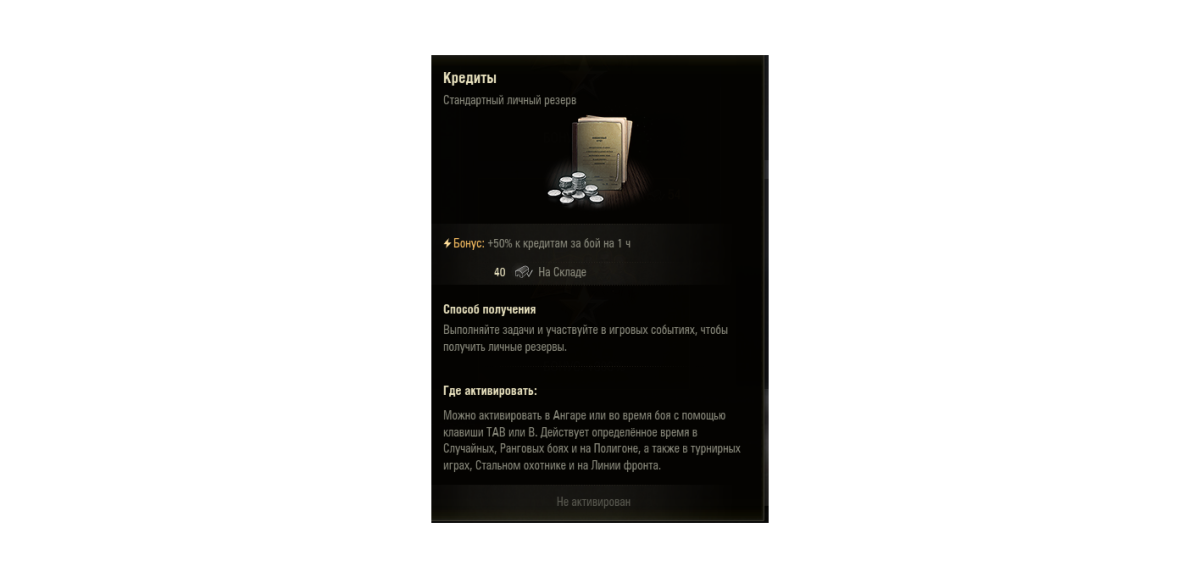 Здравствуйте! Бонус к кредитам не работает на стальной охотник, хотя в описании резерва написанно, что он работает на данный режим. Включил бонус,занял первое место, прибыль такая же , как и без резерва на денюшку!