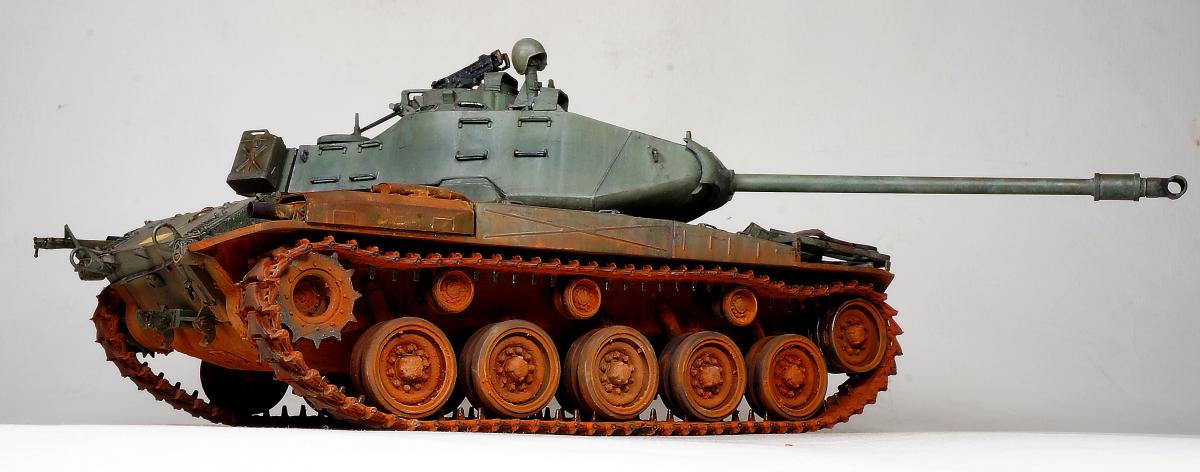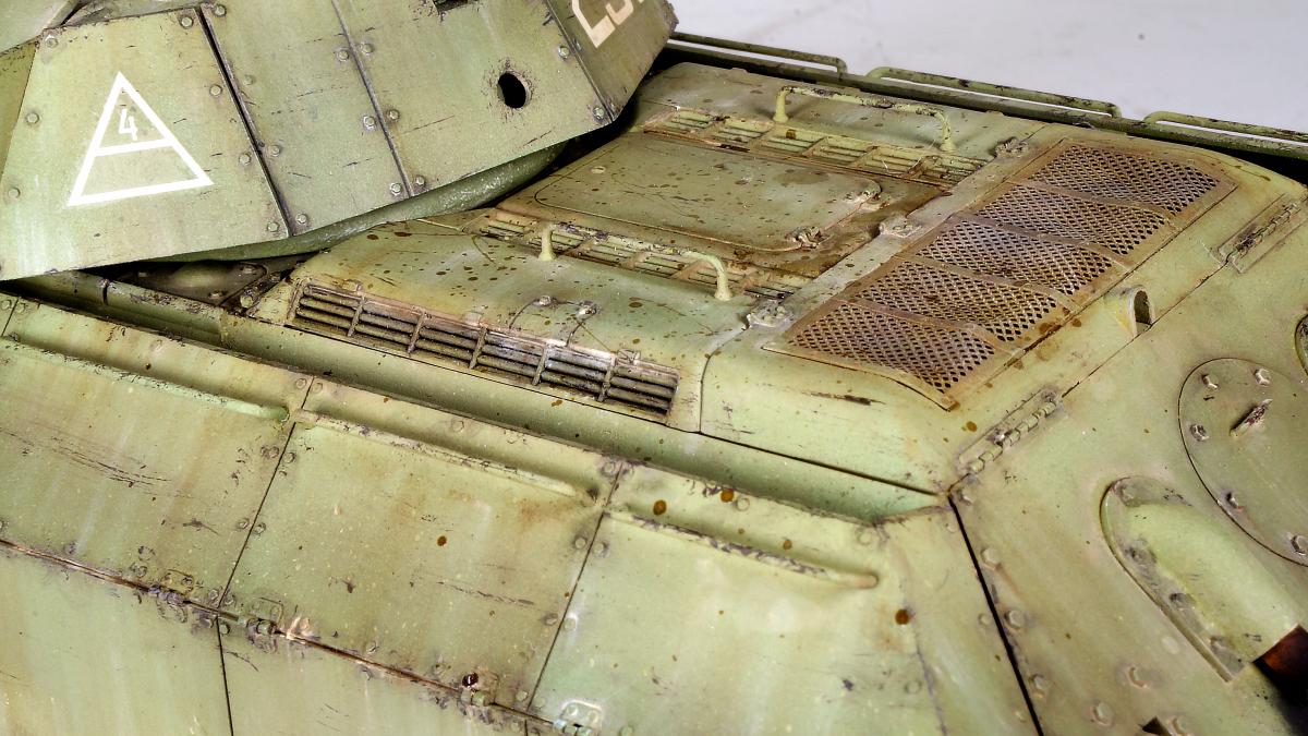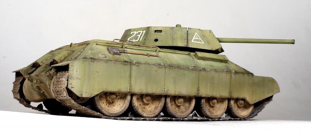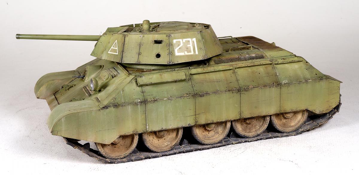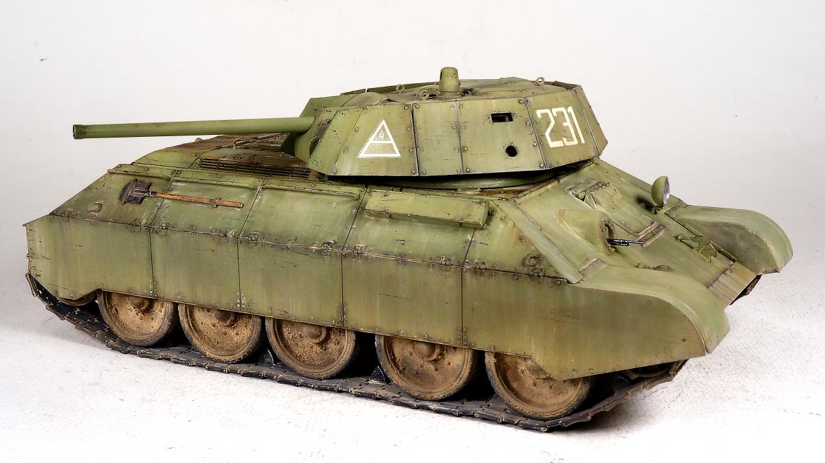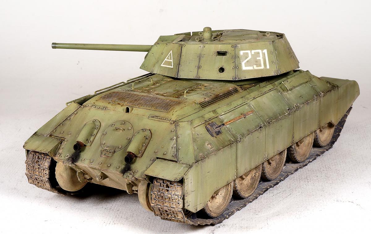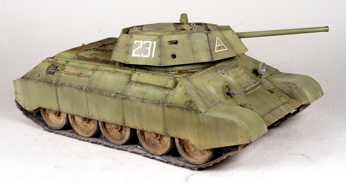 Добрый день!Корпус модели - Tamiya, башня - Звезда.Заменил башню на Звезду, т.к. башня у Tamiya была бракована. Сборка из коробки с некоторыми дополнениями: 1. Стволы пулеметов - RB-model. 2. Трос - Eureka. 3. Поручни - проволока. 4. Траки - Звезда. 5. Катки - Звезда. 6. Башня - Звезда. 7. Ствол орудия - Model gun. 8. Сетки МТО - Aber. 9. Сварные швы. 10. Приварки для крепления крыльев. 11. Немного фототравления. Окраска акрилом Tamiya.
