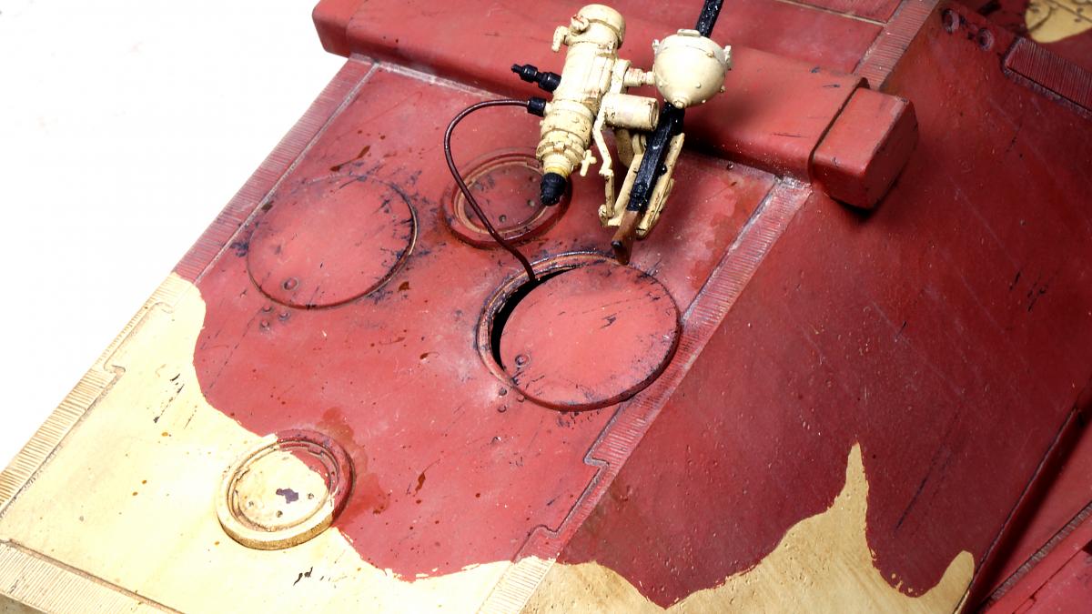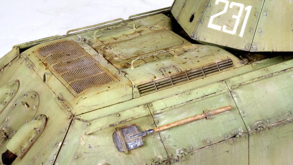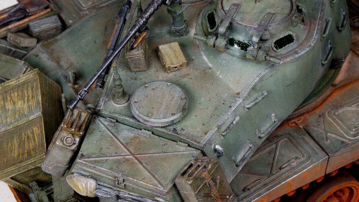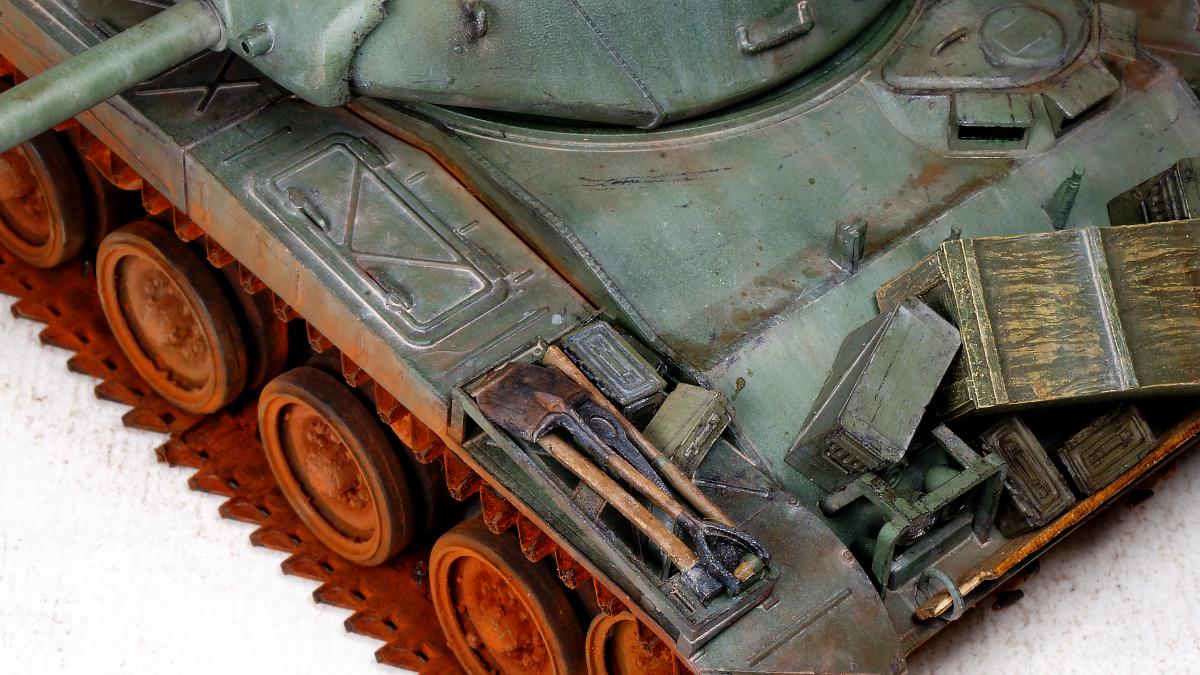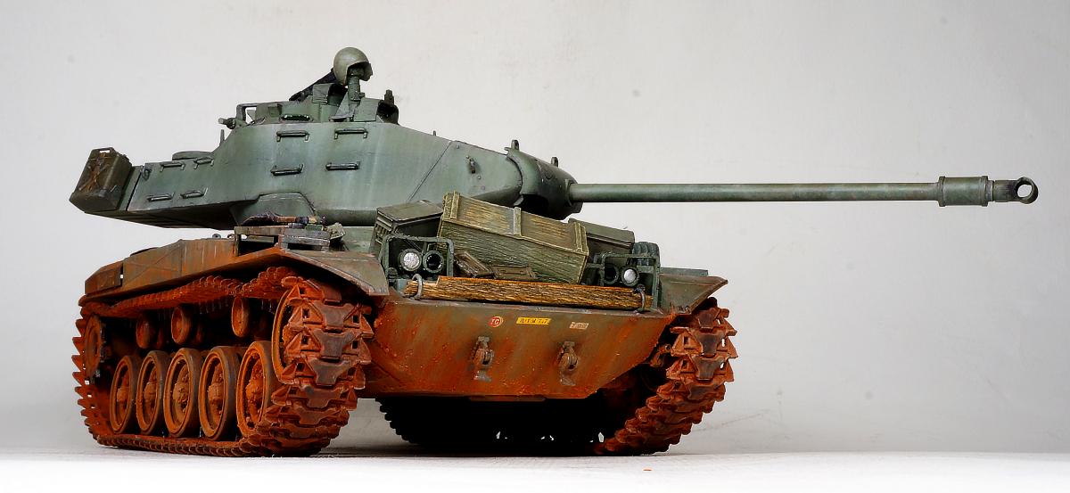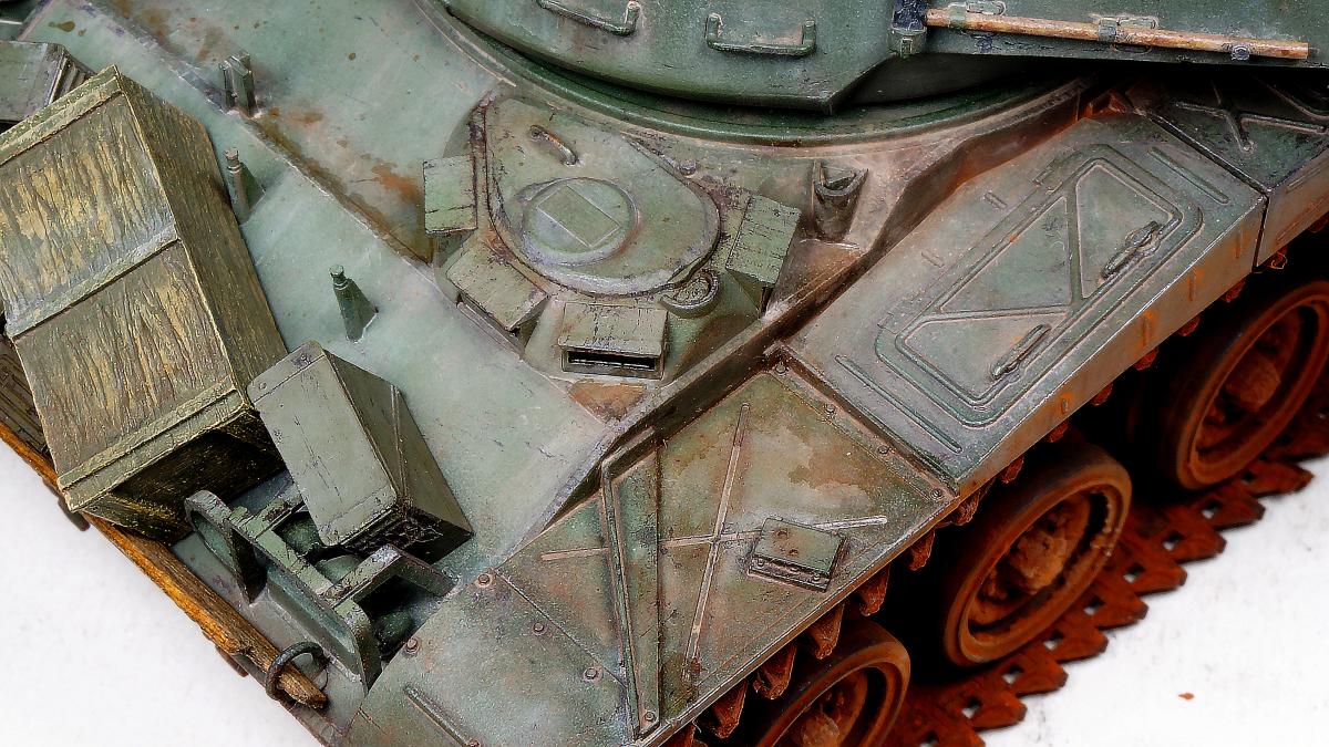 Добрый день!Корпус модели - Tamiya, башня - Звезда.Заменил башню на Звезду, т.к. башня у Tamiya была бракована. Сборка из коробки с некоторыми дополнениями: 1. Стволы пулеметов - RB-model. 2. Трос - Eureka. 3. Поручни - проволока. 4. Траки - Звезда. 5. Катки - Звезда. 6. Башня - Звезда. 7. Ствол орудия - Model gun. 8. Сетки МТО - Aber. 9. Сварные швы. 10. Приварки для крепления крыльев. 11. Немного фототравления. Окраска акрилом Tamiya.