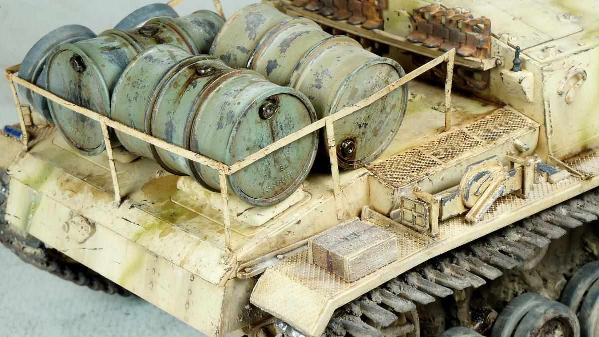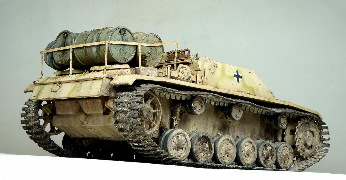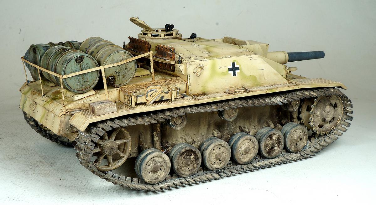 Добрый день! Модель от фирмы Dragon. Сборка из коробки с некоторыми дополнениями: 1. Ствол - Rb-model. 2. Траки - Master Club. 3. Бочка, канистры, ящики - Tamiya. Окраска акрилом тамии.