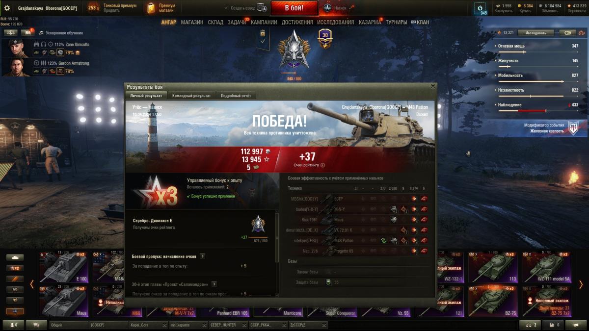 3. Не,в Натиске норм катать и качать технику. Но в золотой ранг попасть почти не реально. Мне чуток оставался, но как ни выкладывайся, попасть туда почти невозможно. А так вот в апреле 2024 года провёл свой самый лучший бой, взял 6 фрагов, бой получился эпичным.