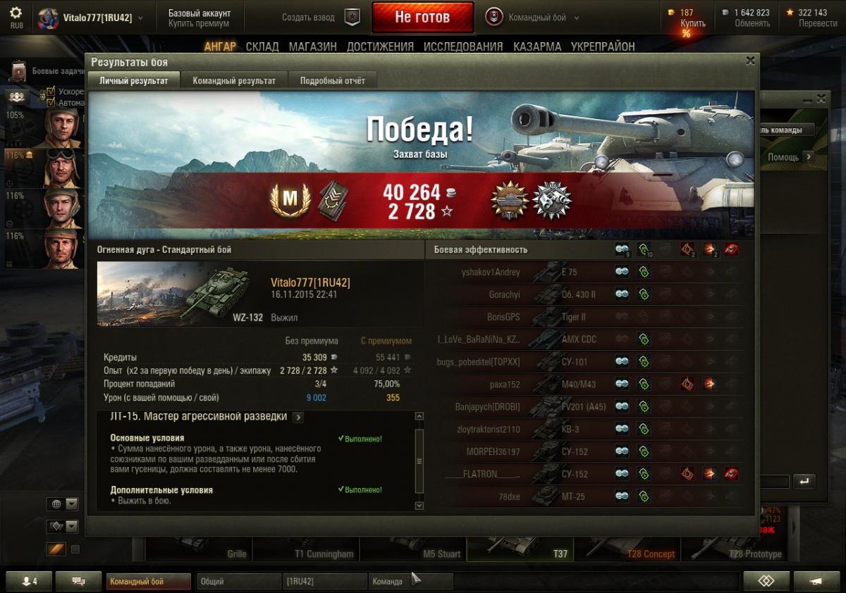 С 23 февраля всех! На конец то выполнил ЛБЗ 15 на буратосе! Первый бой не хватило пару хп следующий бой опля выполнил УРА)))))))))))))) Видимо это подарок в ангар))) На С-51 тяжело 3к настрелять ну зато если трёшку настрелял то по опыту должен на 1 месте быть!
