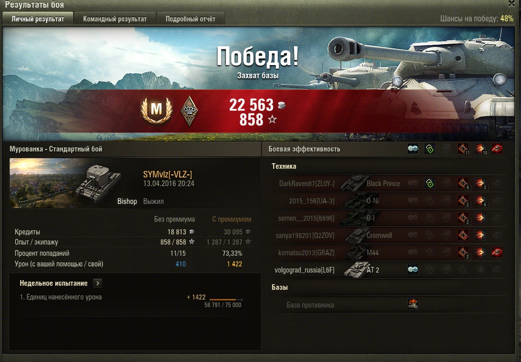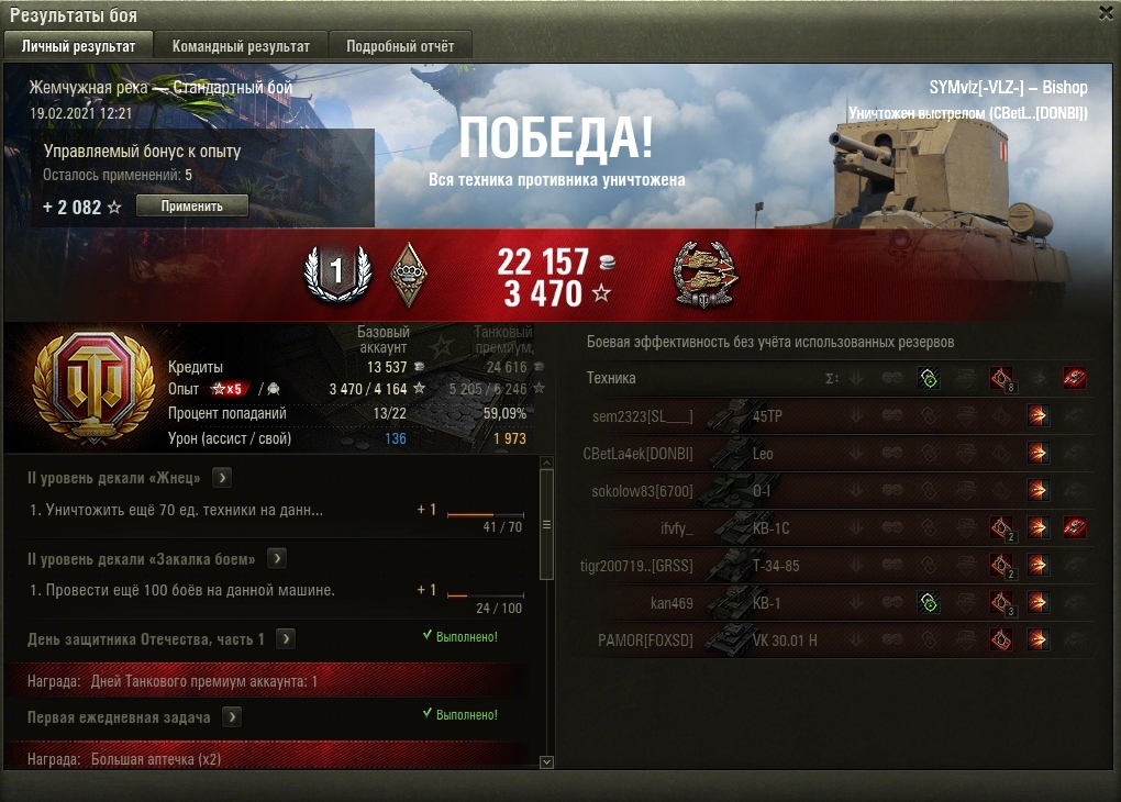 Сегодняшняя сессия игры "онли Бишоп" впечатлила... Таких раков в команде давно не было... 7 побед из 21 боя...