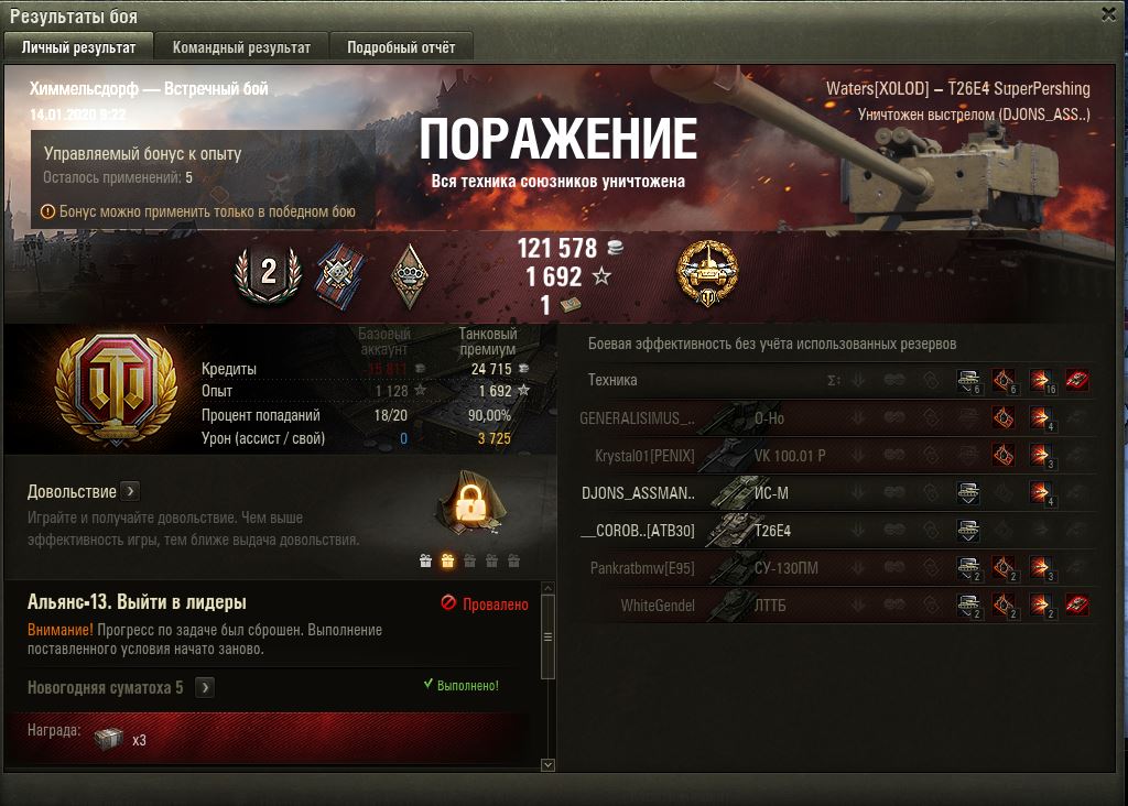 Подскажите, 13 задача, Попасть в топ-3 по опыту в обеих командах в 3 боях подряд. Опыт за достойное сопротивление не считается в этой задаче? http://cdn-frm-eu.wargaming.net/wot/ru/uploads/monthly_01_2020/post-57755-0-84573100-1578980367_thumb.jpg http://cdn-frm-eu.wargaming.net/wot/ru/uploads/monthly_01_2020/post-57755-0-39509300-1578980384_thumb.jpg http://cdn-frm-eu.wargaming.net/wot/ru/uploads/monthly_01_2020/post-57755-0-18166900-1578980391_thumb.jpg