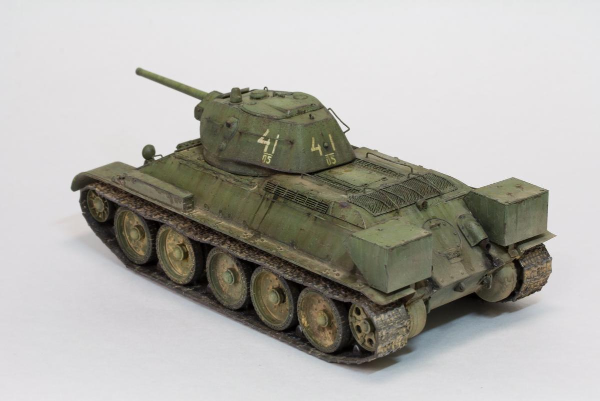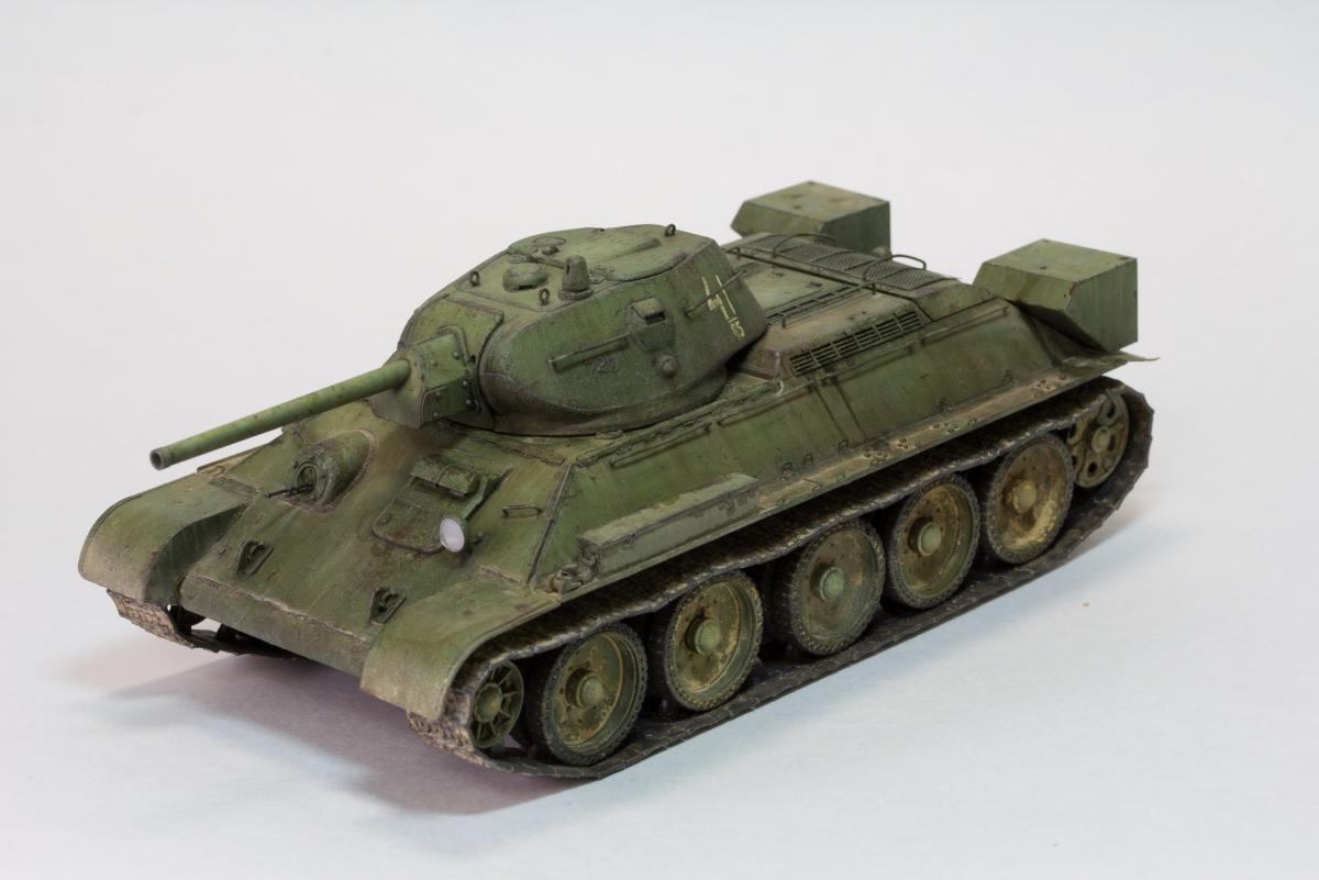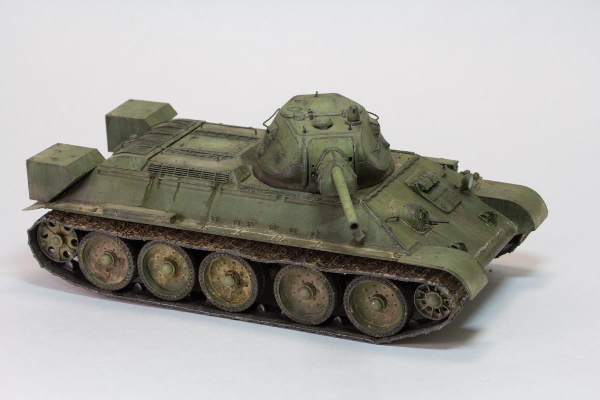 Давно не брал я в руки шашек и не выкладывал свои работы. Увы, выкладывать было нечего. Очередная постройка затянулась почти на 5 (!) месяцев! И вот я все завершил. На этот раз Т-34-76 завода "Красное Сормово". Если верить роизводителю модели (Dragon) , то он середины 1943 года. Есть даже фото прототипа, но никакой информации, кроме того, что он застрял в какой то глубокой луже, нет. Что касается самой постройки, то, практически это "изкоробка". Добавлен только ствол курсового пулемета в башне, поручни из проволоки, да фара от "Эльф". С ней кстати вышла неувязка, которая на фото бросается в глаза - стекло фары вклеивал в последнюю очередь уже после всего "обгадинга" и, естественно, забыл про это. Поэтому на фото выглядит очень чистой. Конечно все исправил, сложного ничего нет, но переснимать уже не хотелось. Так что принимайте работу. Матчасть не идеальна однозначно, многие вещи, типа потеков масла из труб (мотористы молчать сделаны для эффекта. Собственно, основной упор, как и во всех своих работах я делаю на визуальную часть. Приятного просмотра. Ну, и, гнилые помидоры в мой адрес, куда уж без них