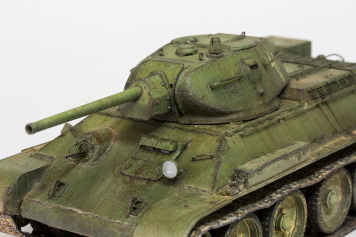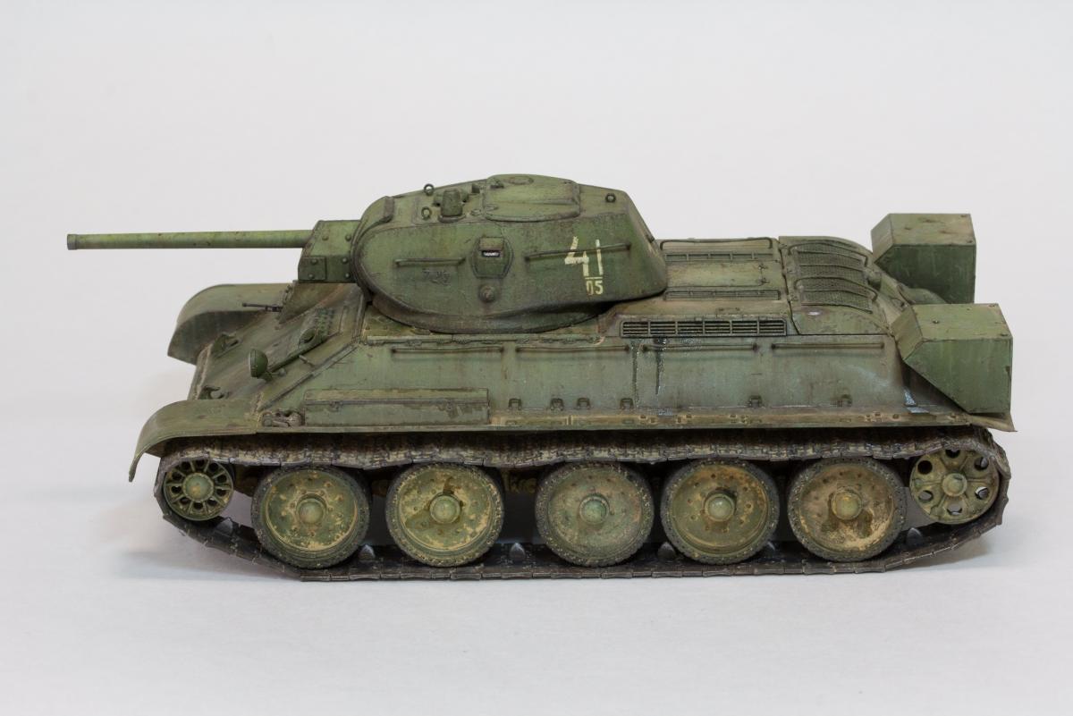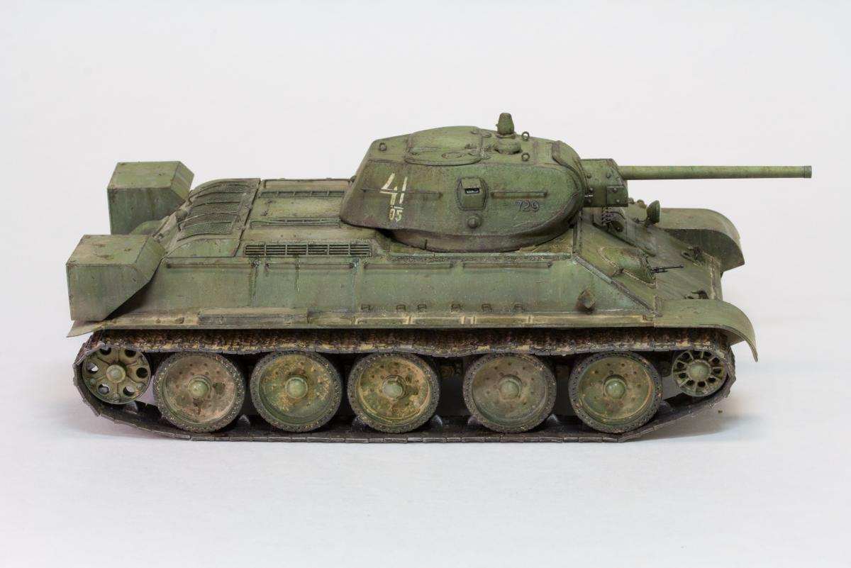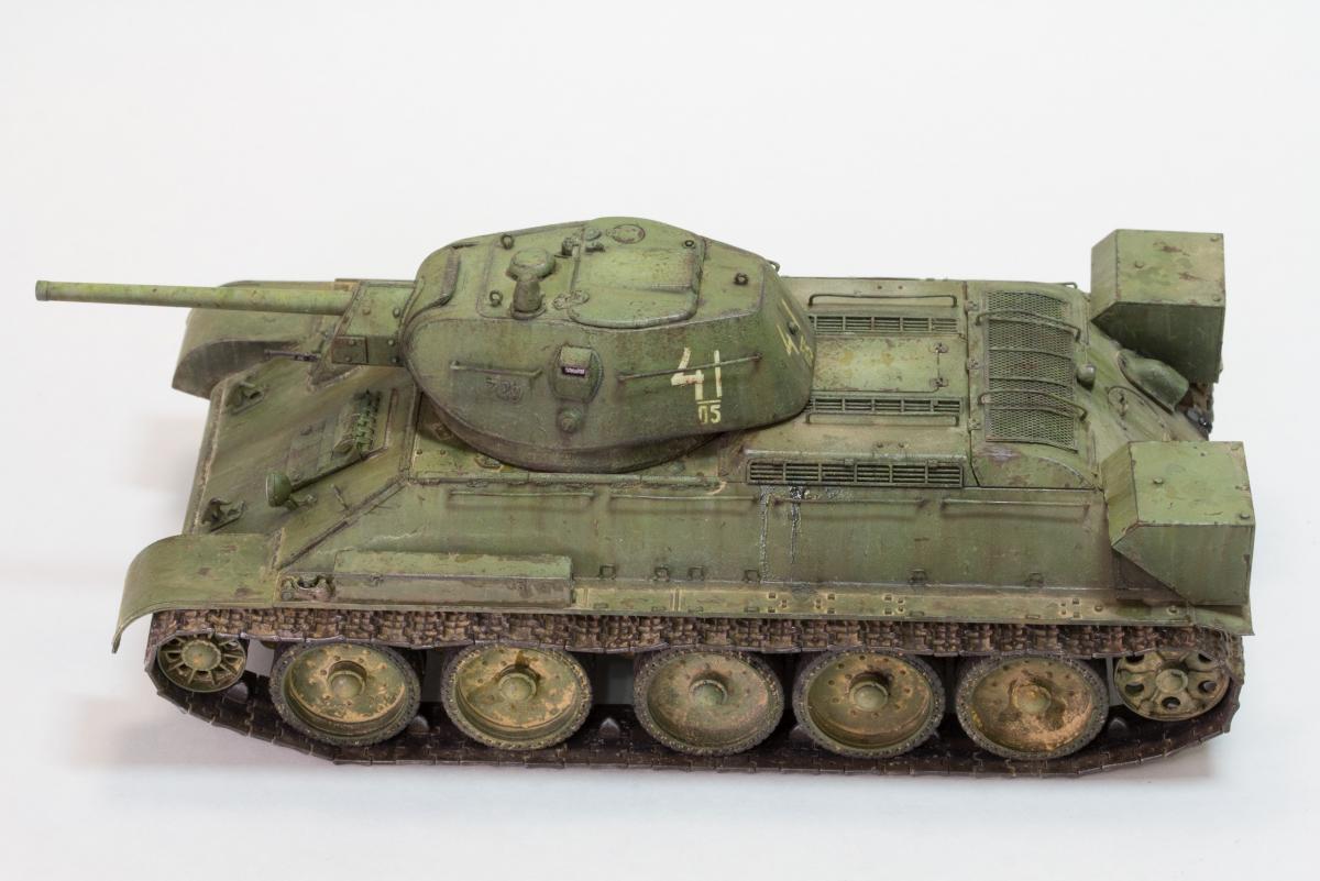 Давно не брал я в руки шашек и не выкладывал свои работы. Увы, выкладывать было нечего. Очередная постройка затянулась почти на 5 (!) месяцев! И вот я все завершил. На этот раз Т-34-76 завода "Красное Сормово". Если верить роизводителю модели (Dragon) , то он середины 1943 года. Есть даже фото прототипа, но никакой информации, кроме того, что он застрял в какой то глубокой луже, нет. Что касается самой постройки, то, практически это "изкоробка". Добавлен только ствол курсового пулемета в башне, поручни из проволоки, да фара от "Эльф". С ней кстати вышла неувязка, которая на фото бросается в глаза - стекло фары вклеивал в последнюю очередь уже после всего "обгадинга" и, естественно, забыл про это. Поэтому на фото выглядит очень чистой. Конечно все исправил, сложного ничего нет, но переснимать уже не хотелось. Так что принимайте работу. Матчасть не идеальна однозначно, многие вещи, типа потеков масла из труб (мотористы молчать сделаны для эффекта. Собственно, основной упор, как и во всех своих работах я делаю на визуальную часть. Приятного просмотра. Ну, и, гнилые помидоры в мой адрес, куда уж без них