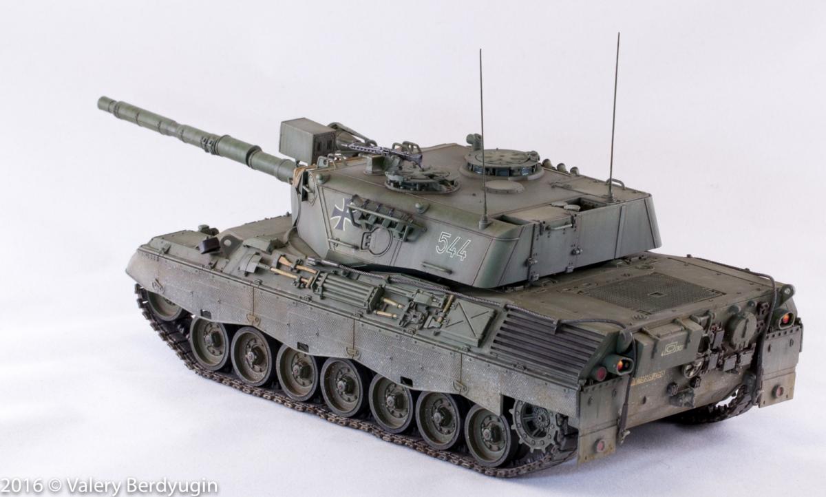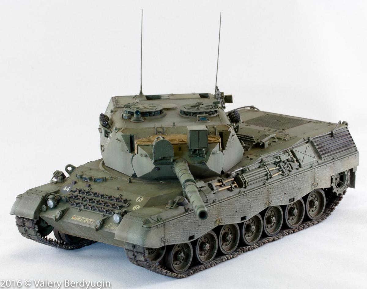 Рассказать историю этого, безусловно, интересного танка коротко не получится. На просторах интернета вы найдёте много информации и фото этой боевой машины. Достаточно сказать, что танк до сих пор стоит на вооружении многих стран, а его глубокая модификация, типа А6/7 являются основными боевыми танками Бундесвера. Что касается модели, то и о ней мне рассказывать не имеет смысла, т.к. я оказался далеко не в первых рядах кто собрал этот танк. Скажу лишь одно, в сборке модель, безусловно, доставит вам приятно проведенное время.Перед вами, практически, классическая "изкоробка". Добавлен лишь трос от Eureka, цепи заглушек и фигурка танкиста от Валькирии, для "оживления" готовой модели. Окрас Валехо, высветления масло MIG.Что вышло, а что нет, судить вам. Лично мне работа именно над моделью этого производителя доставила удовольствие. Особенно, на фоне аналога от HobbyBoss. Приятного просмотра.
