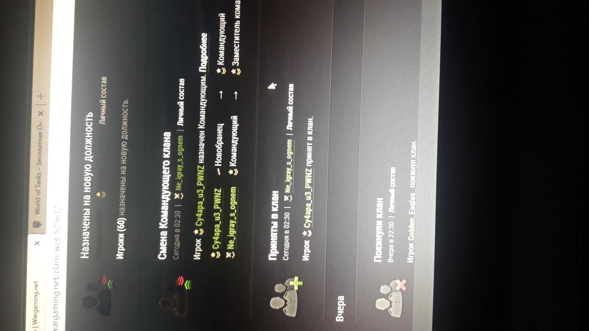 http://cdn-frm-eu.wargaming.net/4.5/style_images/wg/snapback.pngA_Bapbka (09 сен 2020 - 09:15) писал: Командир клана - живой игрок или просто аккаунт для вида? это видимо специально созданный аккаунт для таких дел. в чат клана с этого аккаунта писали.