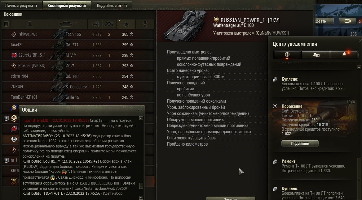 Так что по поводу вафли? Сегодняшняя дата + реплей. http://tankireplays.lesta.ru/site/14177517#vestfild-renameduser_5823519-t-100_lt