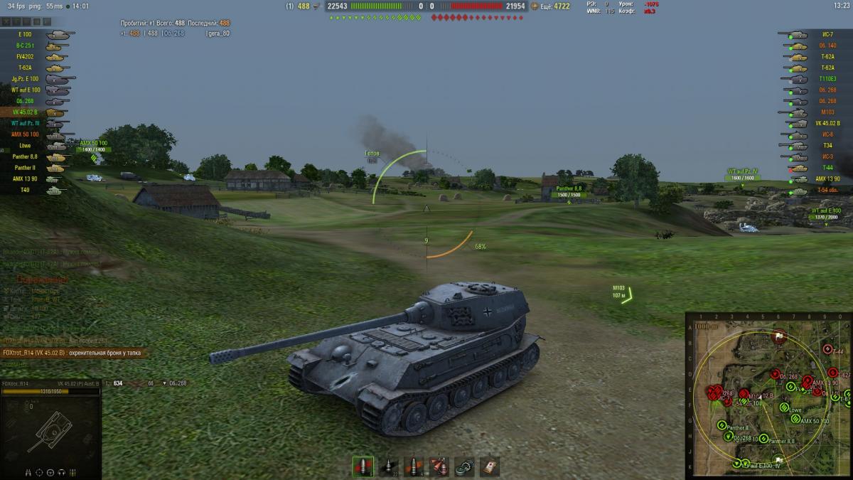 только что играл на мурованке, надо убимть 2 пт на уровень выше, я на т54, убил одну 268, настрелял дамага 2400, и вот тут передо мной маячит второй 268 у котого 301 хп, он в кд, я на радостях вылетаю и даю по нему шот с пробитием,.... вылетает 270 дамаги, он успевает перезарядится и убить меня, спс вбр за то что ты так нам помогаешь в трудные минуты !