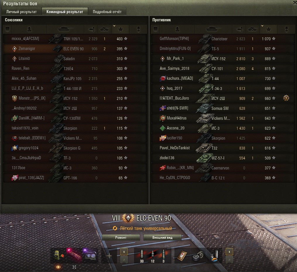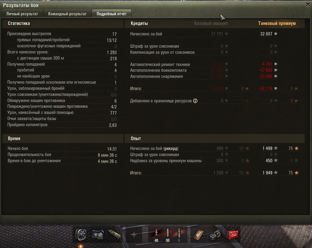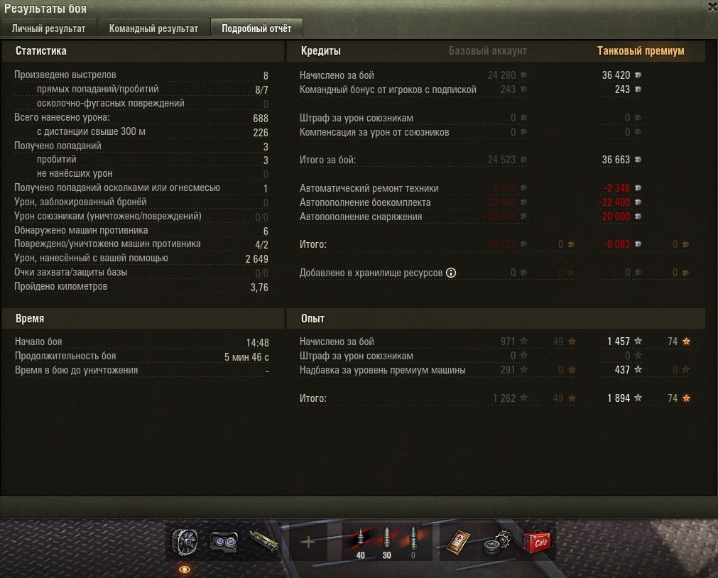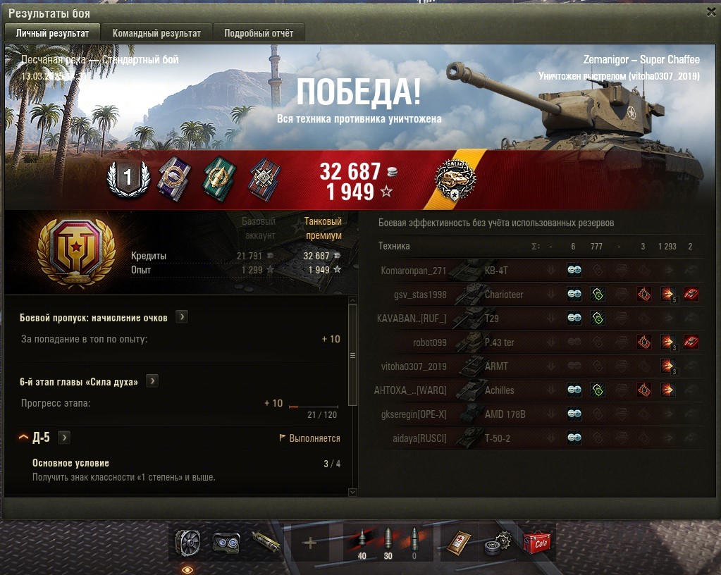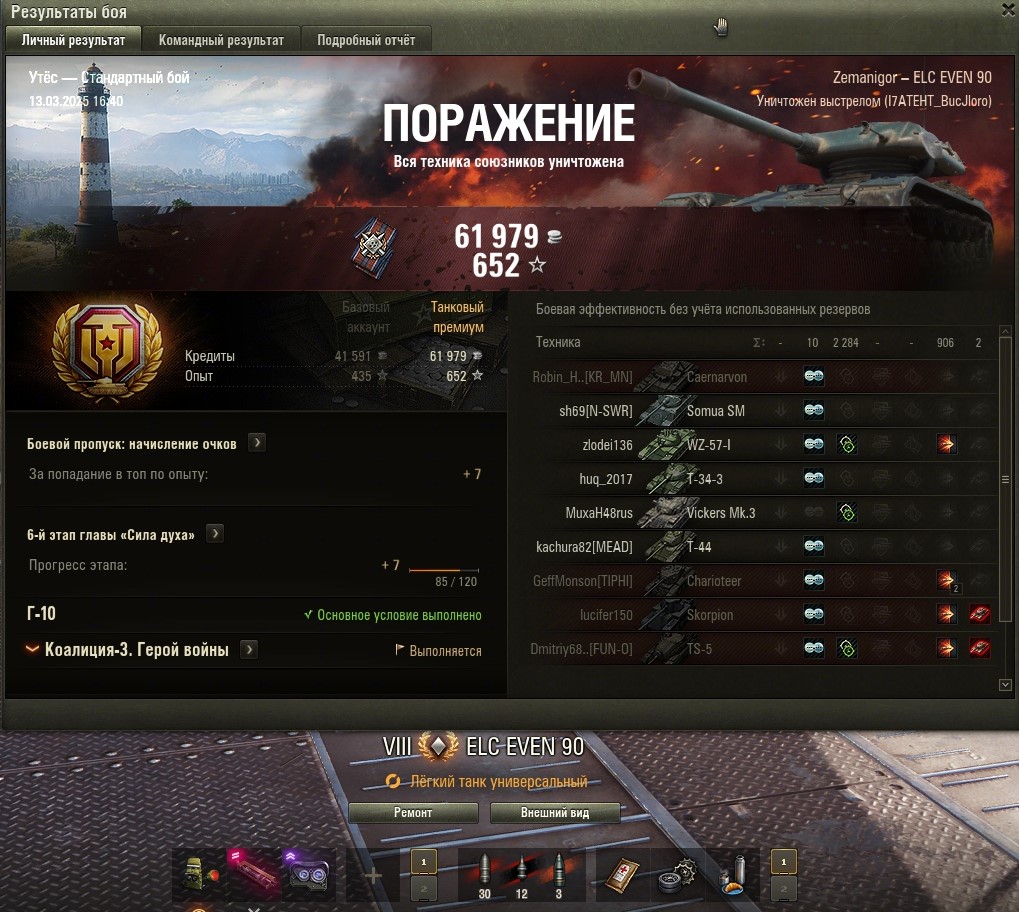 Все основные задачи выполнены и приступил к финальным 5-м задачам. Первой выполнил Г-15 (без отличия). Насветить на 18 000 урония. Играл на Мантикоре и выполнил фактически за 4 боя, в 5 бою пытался выполнить на отлично (24 000 насвета), но не повезло. Итого: https://forum-mt-prod.lesta.ru/monthly_03_2025/post-58471993-0-27334100-1741710926_thumb.jpg https://forum-mt-prod.lesta.ru/monthly_03_2025/post-58471993-0-29793700-1741710932_thumb.jpg https://forum-mt-prod.lesta.ru/monthly_03_2025/post-58471993-0-25794000-1741710937_thumb.jpg Старая гавань - 2430 https://forum-mt-prod.lesta.ru/monthly_03_2025/post-58471993-0-10539700-1741710944_thumb.jpg https://forum-mt-prod.lesta.ru/monthly_03_2025/post-58471993-0-61748900-1741710952_thumb.jpg https://forum-mt-prod.lesta.ru/monthly_03_2025/post-58471993-0-14524600-1741710958_thumb.jpg Прохоровка - 9776 (12 206) https://forum-mt-prod.lesta.ru/monthly_03_2025/post-58471993-0-68880200-1741710963_thumb.jpg https://forum-mt-prod.lesta.ru/monthly_03_2025/post-58471993-0-07924300-1741710975_thumb.jpg https://forum-mt-prod.lesta.ru/monthly_03_2025/post-58471993-0-36846700-1741710979_thumb.jpg Затерянный город - 520 (12 726) https://forum-mt-prod.lesta.ru/monthly_03_2025/post-58471993-0-71574700-1741710985_thumb.jpg https://forum-mt-prod.lesta.ru/monthly_03_2025/post-58471993-0-06625900-1741710992_thumb.jpg https://forum-mt-prod.lesta.ru/monthly_03_2025/post-58471993-0-06028800-1741710997_thumb.jpg Ласвиль - 5977 (18 653)