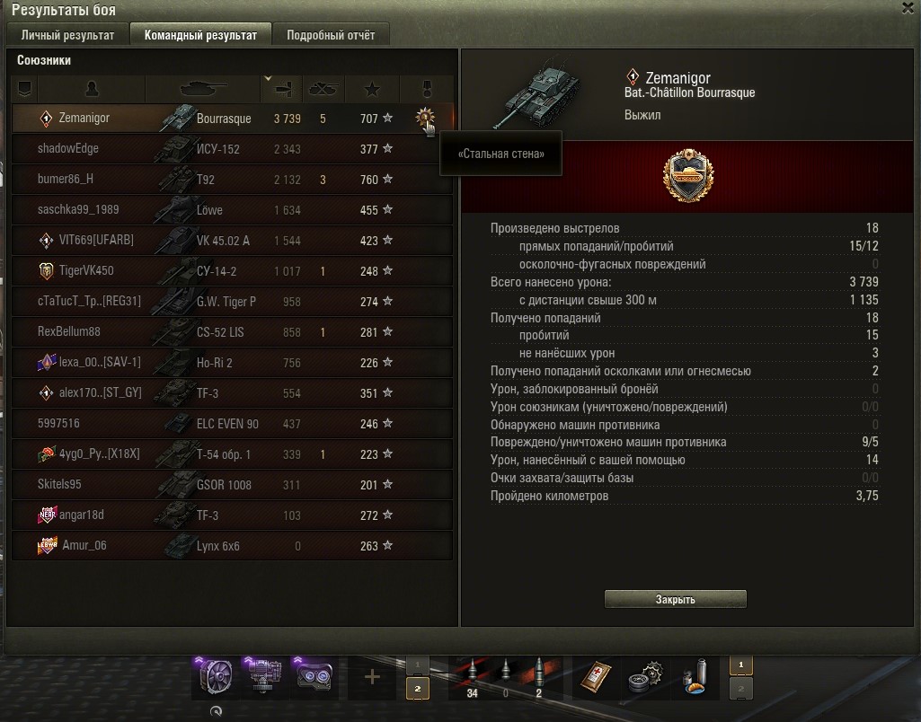 Прошел задачу Б-6. Играл на Бураске. В последнем бою произошла престранная история. При 3 попаданиях не нанесших урон и 0 урона заблокированного броней мне НА БУРАСКЕ!!! выдали медаль "Стальная стена"!!! Не нанесшие урон попадания - это думаю от гонявшейся за мной в конце "поливальной машины" (TF3)? Но Стальная стена!!! https://forum-mt-prod.lesta.ru/monthly_03_2025/post-58471993-0-16986000-1741167963_thumb.jpg