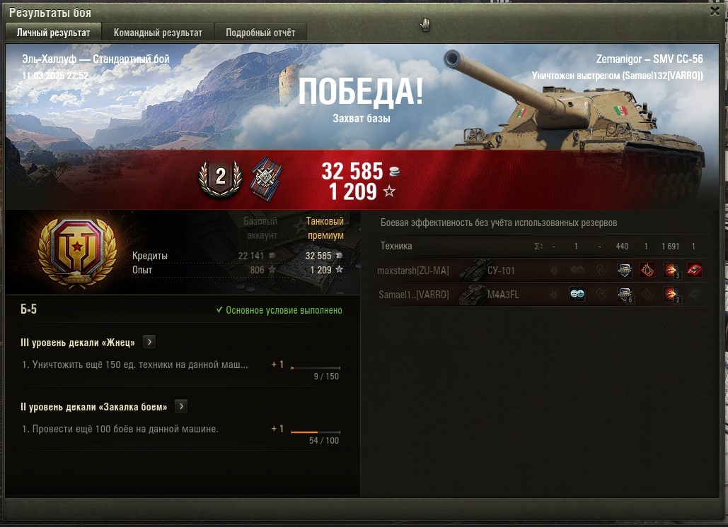 Задача Б-5 выполнена (без отличия) Катал на SMV CC-56 https://forum-mt-prod.lesta.ru/monthly_03_2025/post-58471993-0-74563400-1741723805_thumb.jpg Рекордный бой был на 3300 урона. На ней же буду делать Г-5.