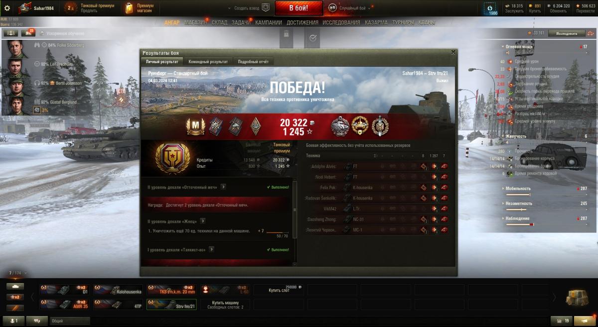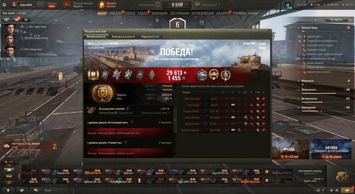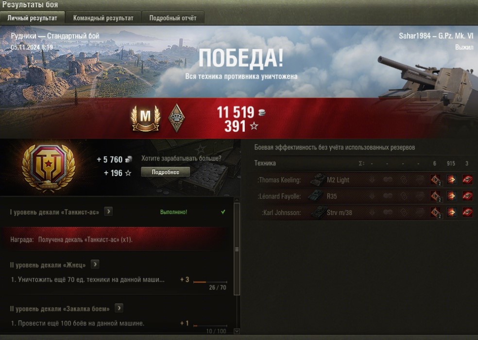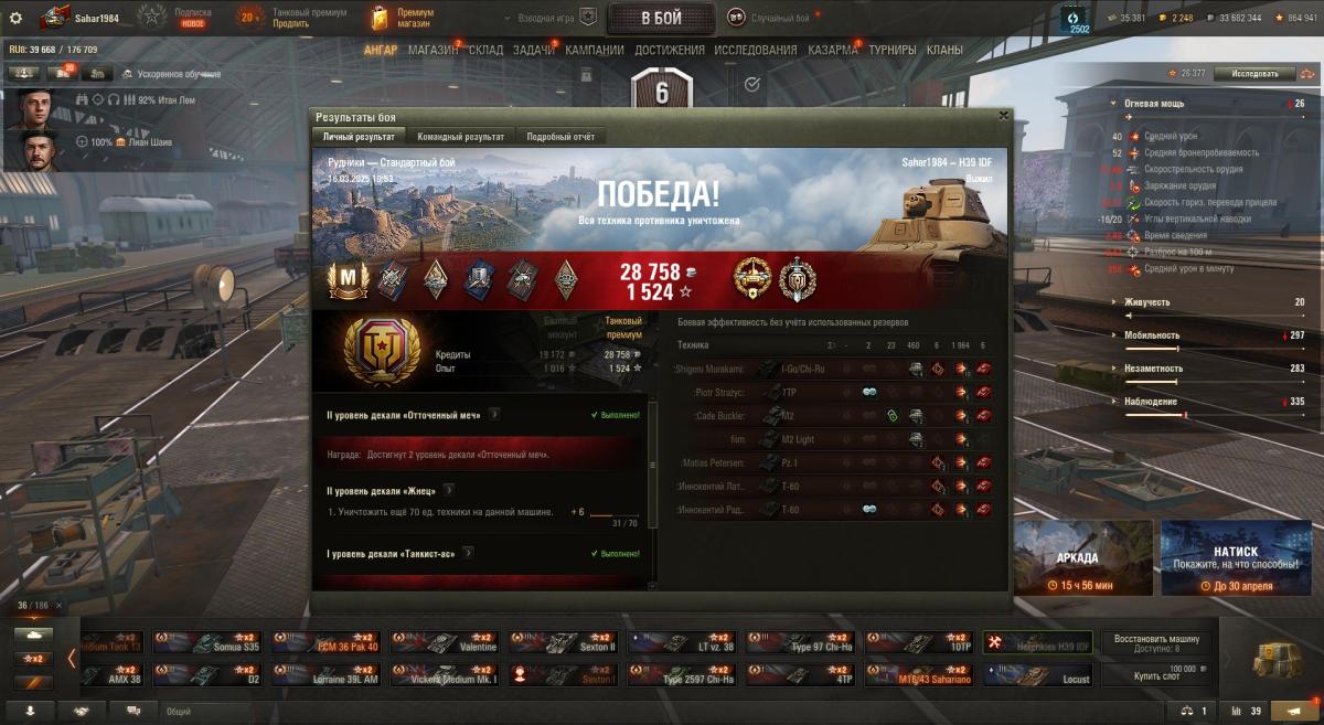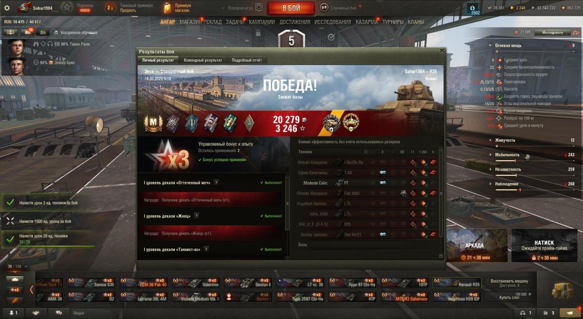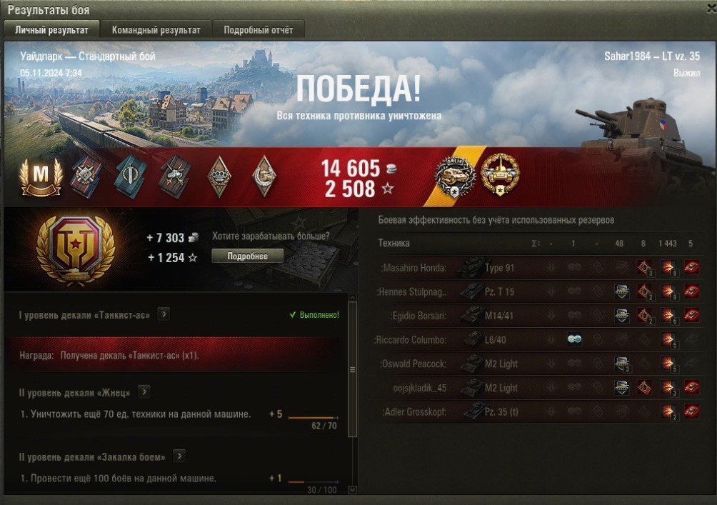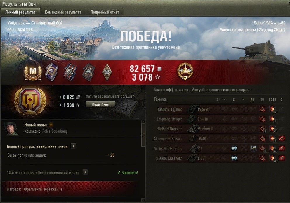 Не согласен с твоей тактикой. Незачем с живым игроком лишний раз связываться иногда - останется мало хп и тебе боты добьют. Лучше безопасно по возможности ботов разбирать с их же засвета. А он там сам пускай с ними в мясорубке хп теряет. Ну давай забьемся. M3 Stuart - 5 боёв хватит тебе мастера взять? Там же боты одни - делов-то по твоему. Ладно 10 давай. Я вот на нём сейчас пытаюсь. Вот только что 1008 чистого опыта 1974 урона - 2 степень.