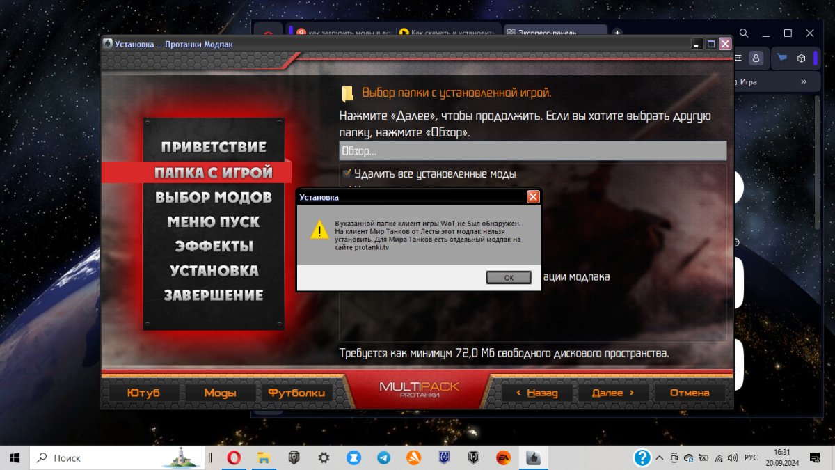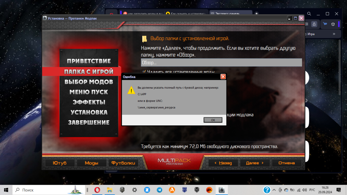 Кто сможет подсказать что делать не могу установить моды от юши, выдаём надо показать путь где в какой папке установлена игра! показываю путь пишет нет игры!
