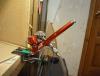 Какое-то время был занят. В эти выходные занимался моделью. Модель мортиры решил перекрасить в более светлый тон.Не знаю будет ли это видно на фото. Подарили на 23 аэрограф, красит очень хорошо. Марка Jaz 1173. Мортира почти собрана, остались мелочи. Как склеить гусеницы так и не нашёл. Нашёл один совет "Контакт+Прайм", но в магазинах его нет. Ещё понравилось, как из зажигалки сделали минигорелку, для сваривания гусениц, но испытания прошли неудачно. Железнодорожные платформы покрасил в чёрно-серый цвет. Откат у мортиры сделал из телескопической антенны. Ещё сфоткал своих помощников.