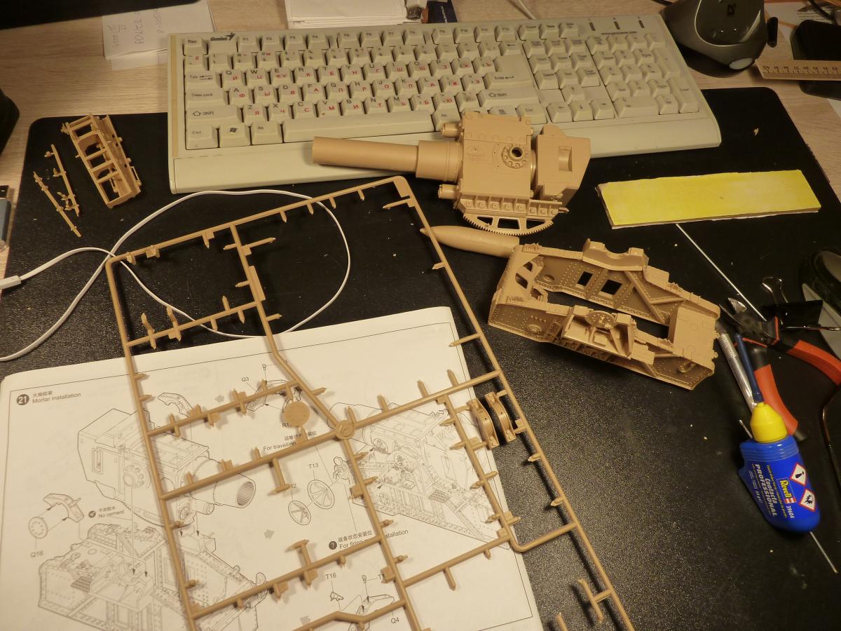 Какое-то время был занят. В эти выходные занимался моделью. Модель мортиры решил перекрасить в более светлый тон.Не знаю будет ли это видно на фото. Подарили на 23 аэрограф, красит очень хорошо. Марка Jaz 1173. Мортира почти собрана, остались мелочи. Как склеить гусеницы так и не нашёл. Нашёл один совет "Контакт+Прайм", но в магазинах его нет. Ещё понравилось, как из зажигалки сделали минигорелку, для сваривания гусениц, но испытания прошли неудачно. Железнодорожные платформы покрасил в чёрно-серый цвет. Откат у мортиры сделал из телескопической антенны. Ещё сфоткал своих помощников.