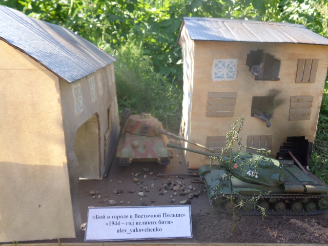 Работа допущена. 1. alex_yakovchenko 2. Бой в городе в Восточной Польше На диораме представлен эпизод встречи в городском бою двух танков Тигр II и ИС-2 во время Львовско-Сандомирской операции, проходившей с 13 июля по 29 августа 1944. Это была стратегическая военная наступательная операция вооружённых сил СССР против войск нацистской Германии и Венгрии во время Великой Отечественной войны с целью освобождения Западной Украины и занятия Юго-Восточной Польши. В боях принимали участие танки ИС-2 и Тигр II (Königstiger). http://cdn-frm-eu.wargaming.net/wot/ru/uploads/monthly_07_2014/post-5966193-0-40270500-1406726866_thumb.jpg 3. Ход работ 4. Фото с разных ракурсов Кстати, вёл блог вот ссылка http://forum.worldoftanks.ru/index.php?/topic/1348791-сборка-диорамы-на-конкурс-1944-год-великих-битв/page__fromsearch__1