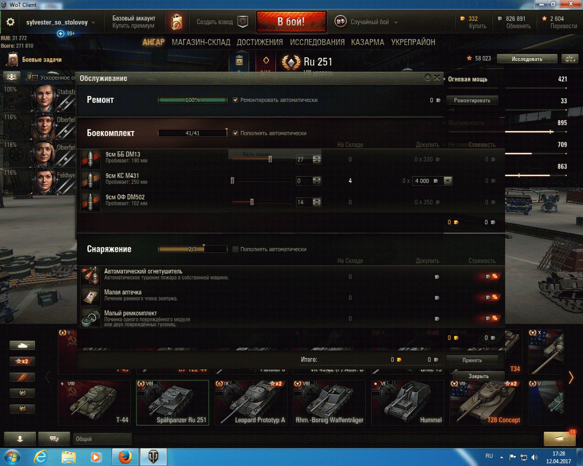 в данное время , невозможно пополнить снаряжение , некорректно отображается вкладка "обслуживание"